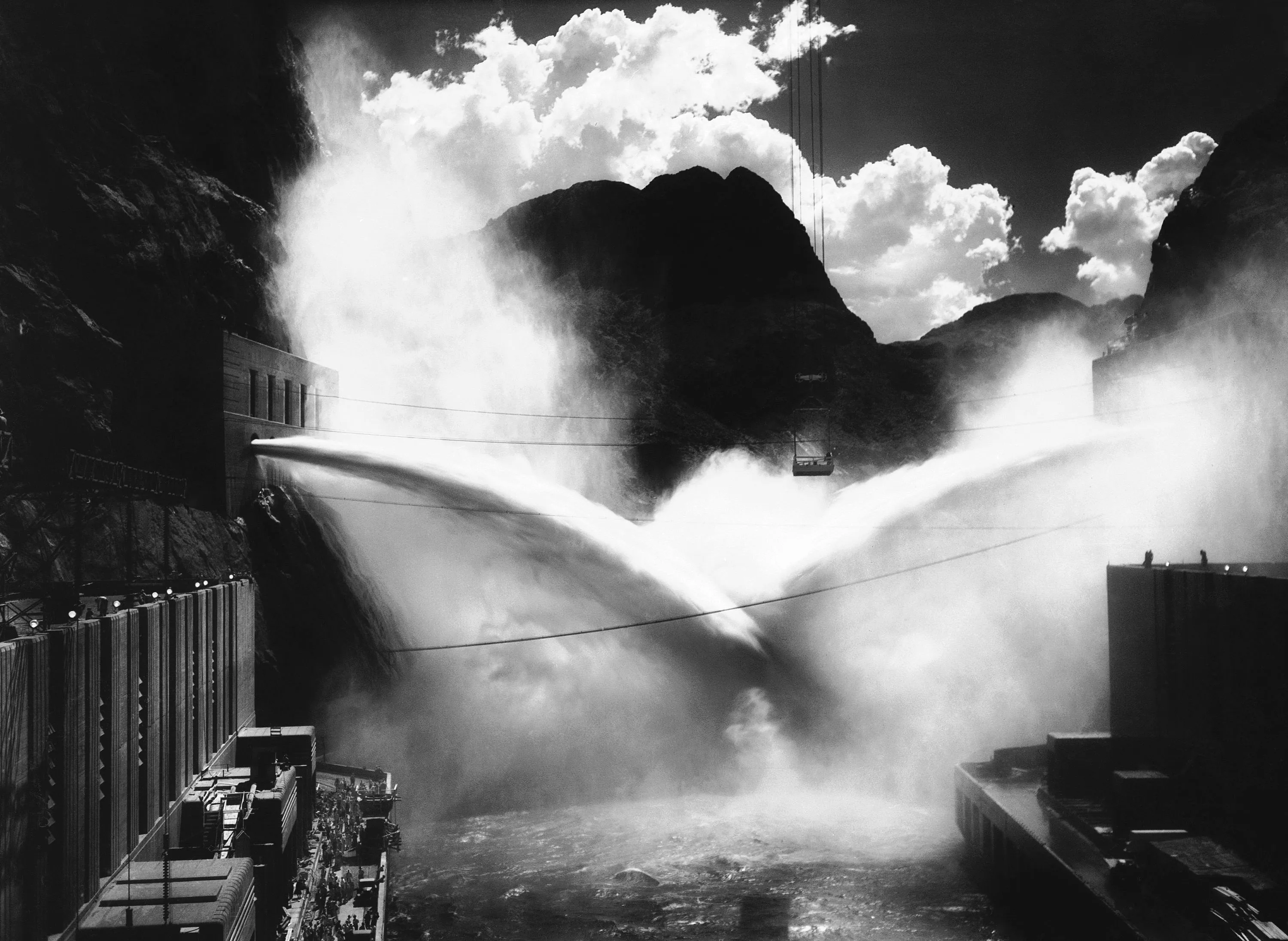 The mighty man-made falls of the Colorado River with the six outlets wide open in a night display. Since the start of generation of power here the dam has been a night-time Mecca for tourists in Los Angeles, September 22, 1936. (Photo by AP Photo)