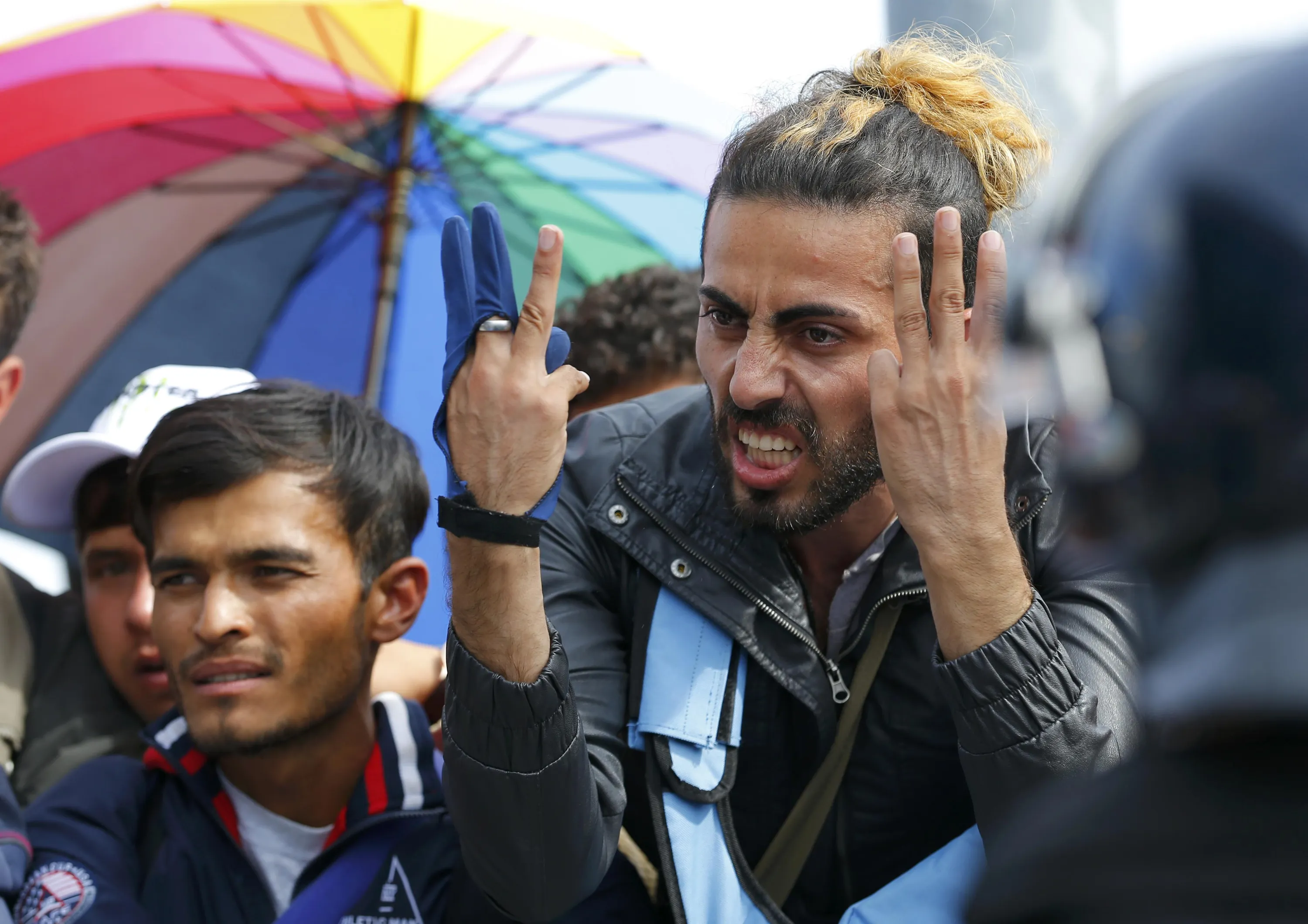 A migrant gestures as he talks to poilice at the Croatia-Slovenia border crossing at Bregana, Croatia, September 20, 2015. (Photo by Laszlo Balogh/Reuters)