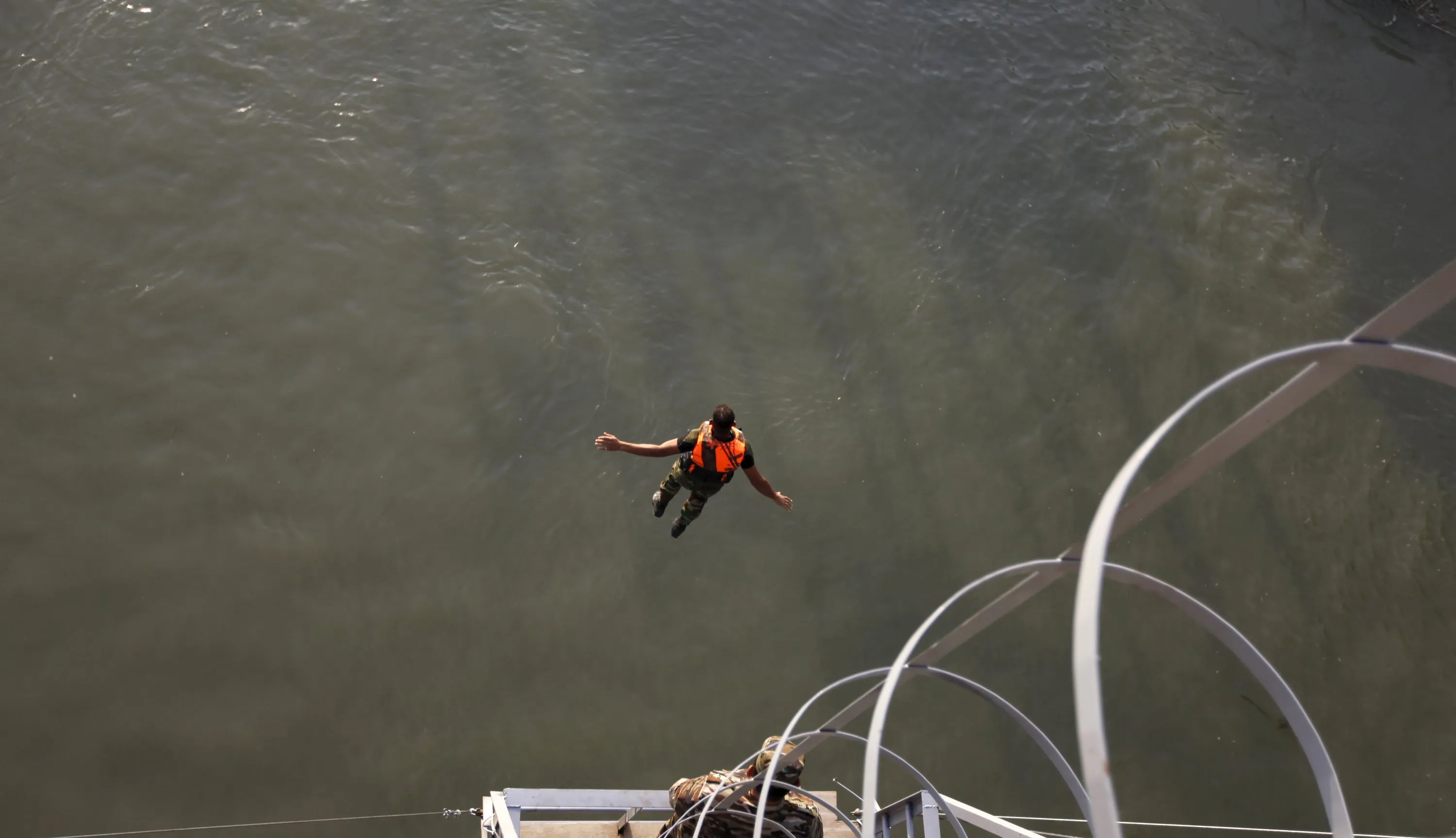 An Iraqi army cadet performs “the leap of faith” from a bridge in Baghdad, September 22, 2015. (Photo by Ahmed Saad/Reuters)