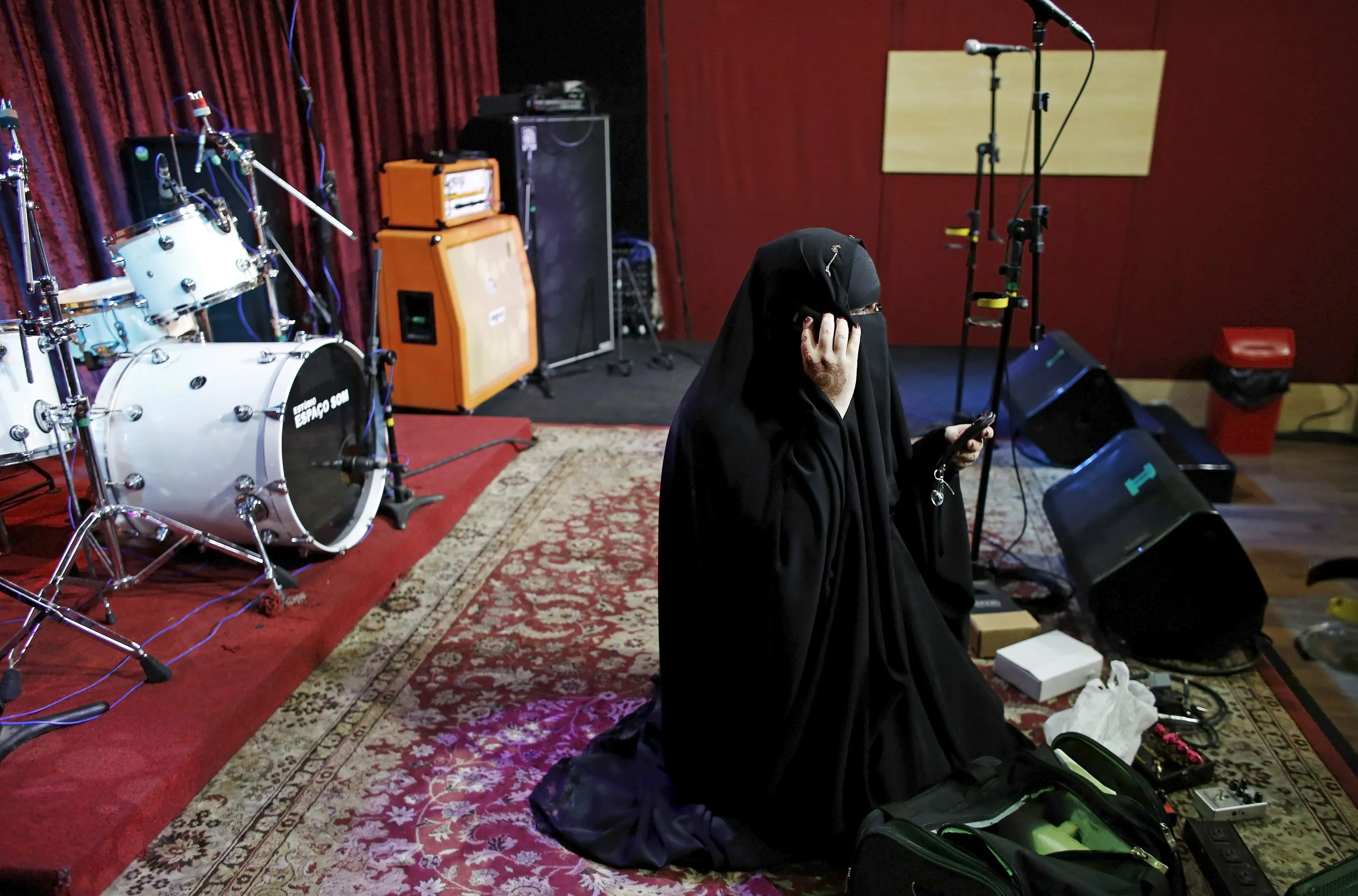 Gisele Marie, a Muslim woman and professional heavy metal musician, talks on her mobile phone before a concert in Sao Paulo December 16, 2014. (Photo by Nacho Doce/Reuters)