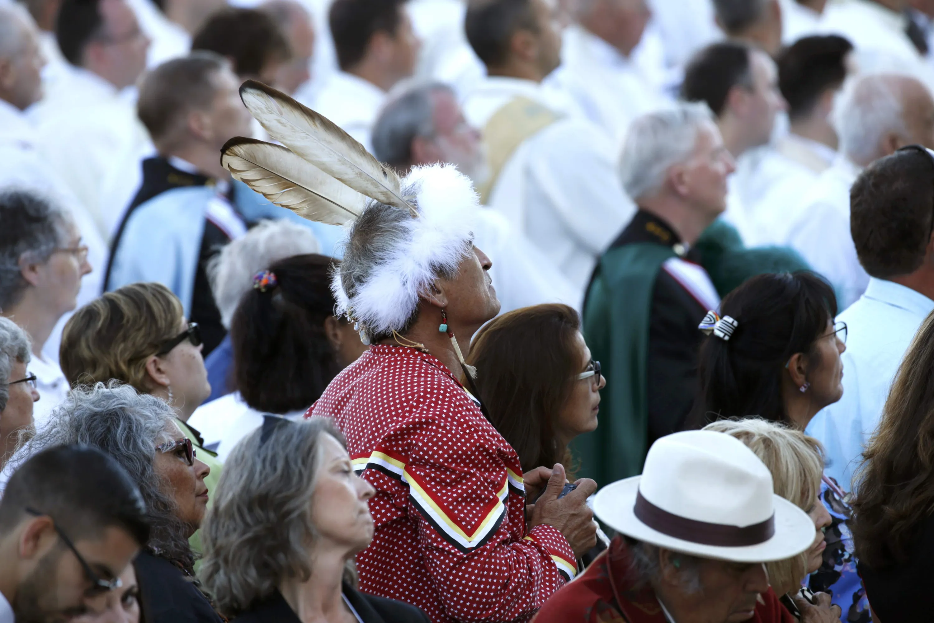 Members of the public watch as Pope Francis (not pictured) presides over a Canonization Mass for Friar Serra at the Basilica of the National Shrine of the Immaculate Conception in Washington September 23, 2015. (Photo by Kevin Lamarque/Reuters)