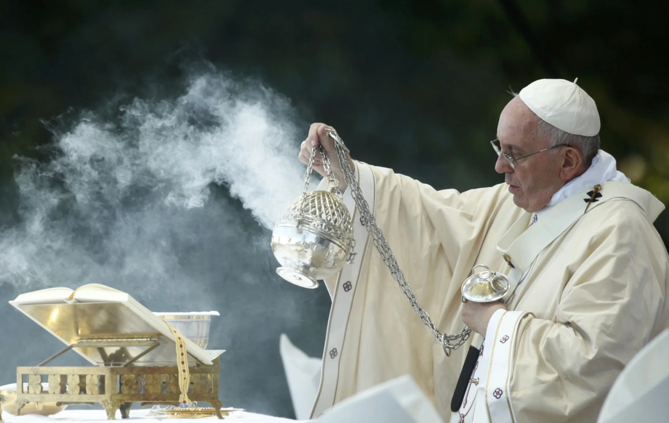 Pope Francis dispenses incense while celebrating Mass at the National Shrine of the Immaculate Conception for the Canonization Mass for Friar Junipero Serra in Washington September 23, 2015. (Photo by Kevin Lamarque/Reuters)