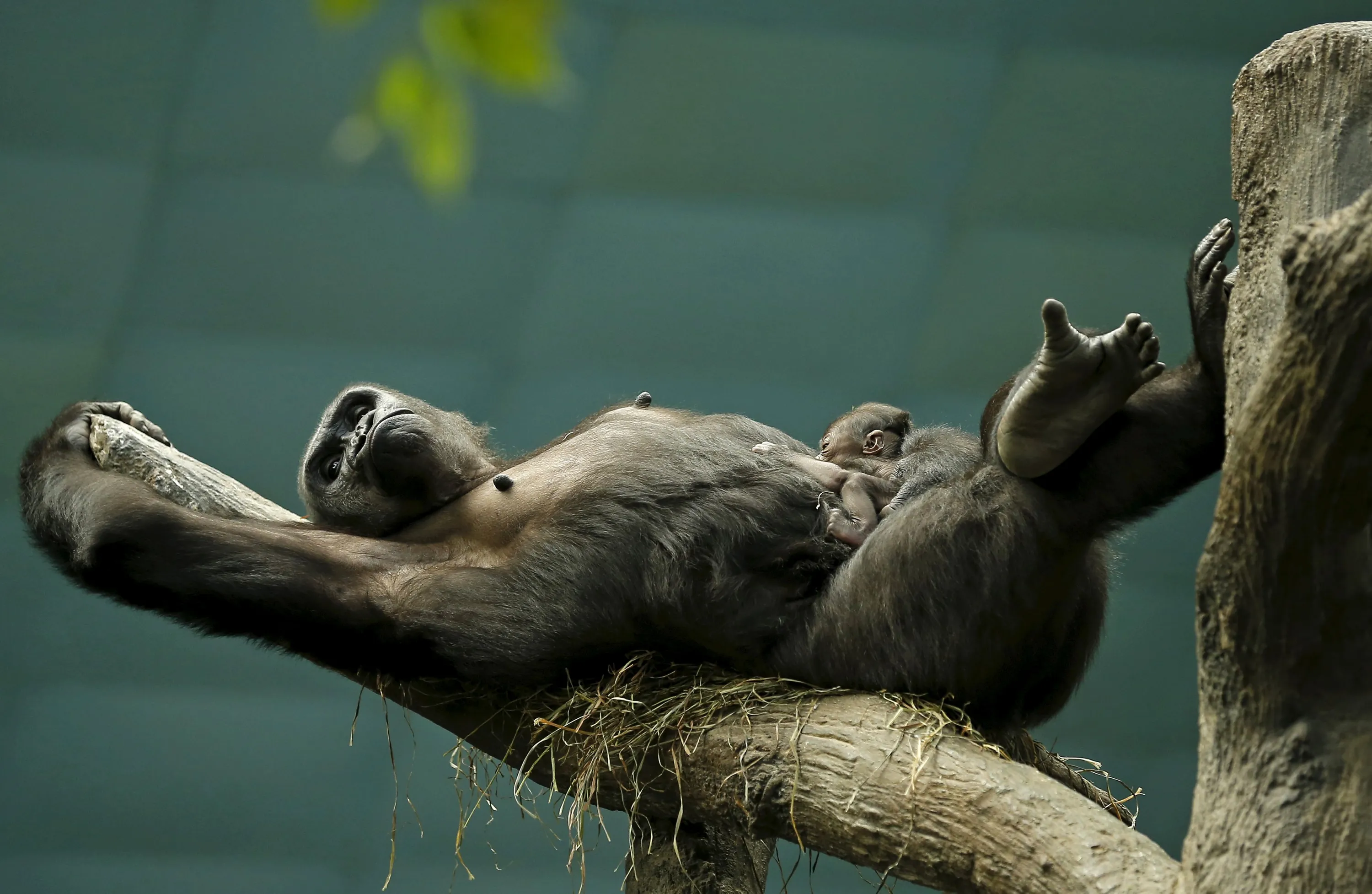 Western lowland gorilla Kamba lays on a branch with her one-day-old son Zachary at the Brookfield Zoo in Brookfield, Illinois, United States, September 24, 2015. (Photo by Jim Young/Reuters)