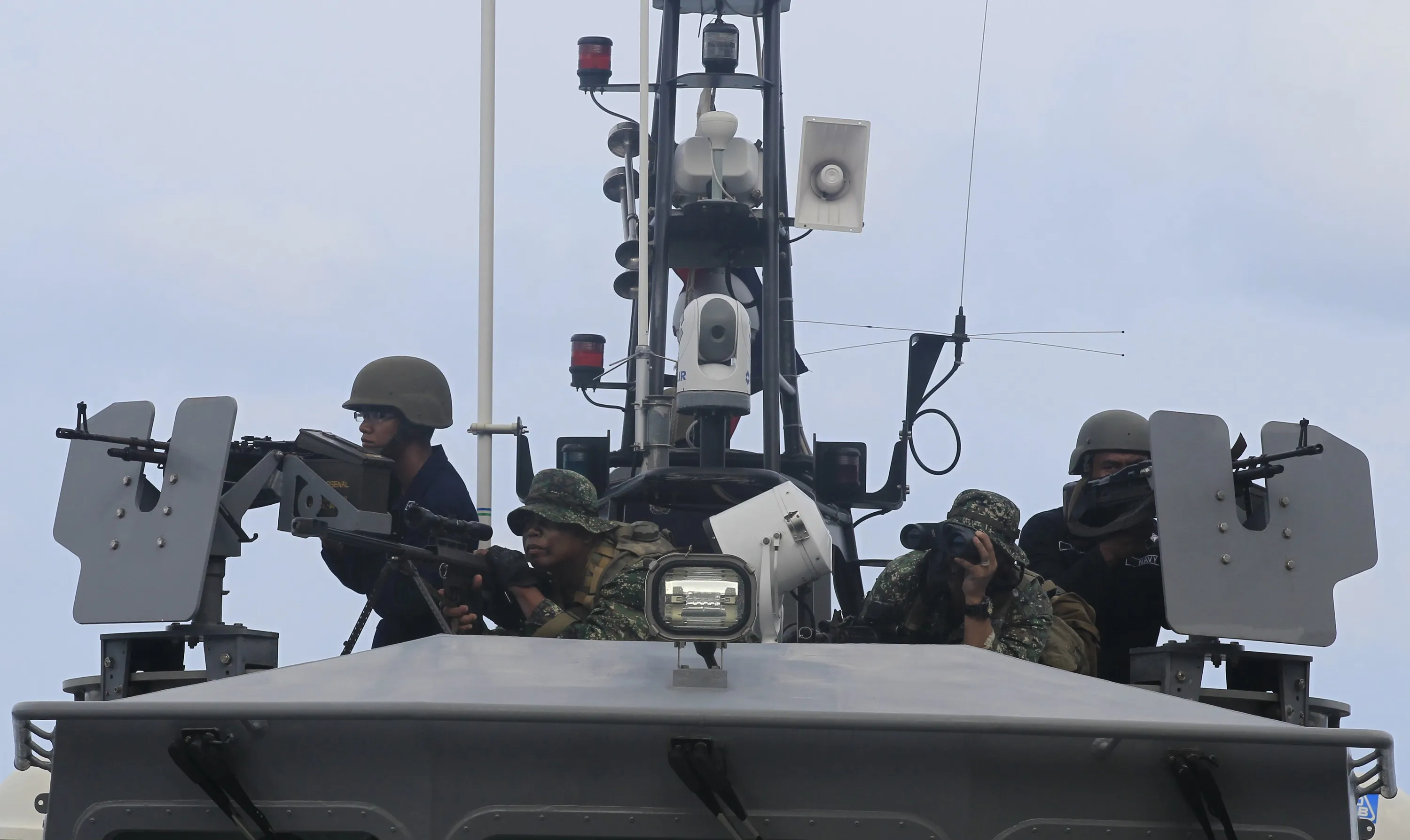 Members of the Philippine Marines aim their automatic rifles atop of a Multi Purpose Attack Craft (MPAC) during the Fleet-Marine Amphibious Exercise at the marine headquarter in Ternate, cavite city, south of Manila September 24, 2015. (Photo by Romeo Ranoco/Reuters)