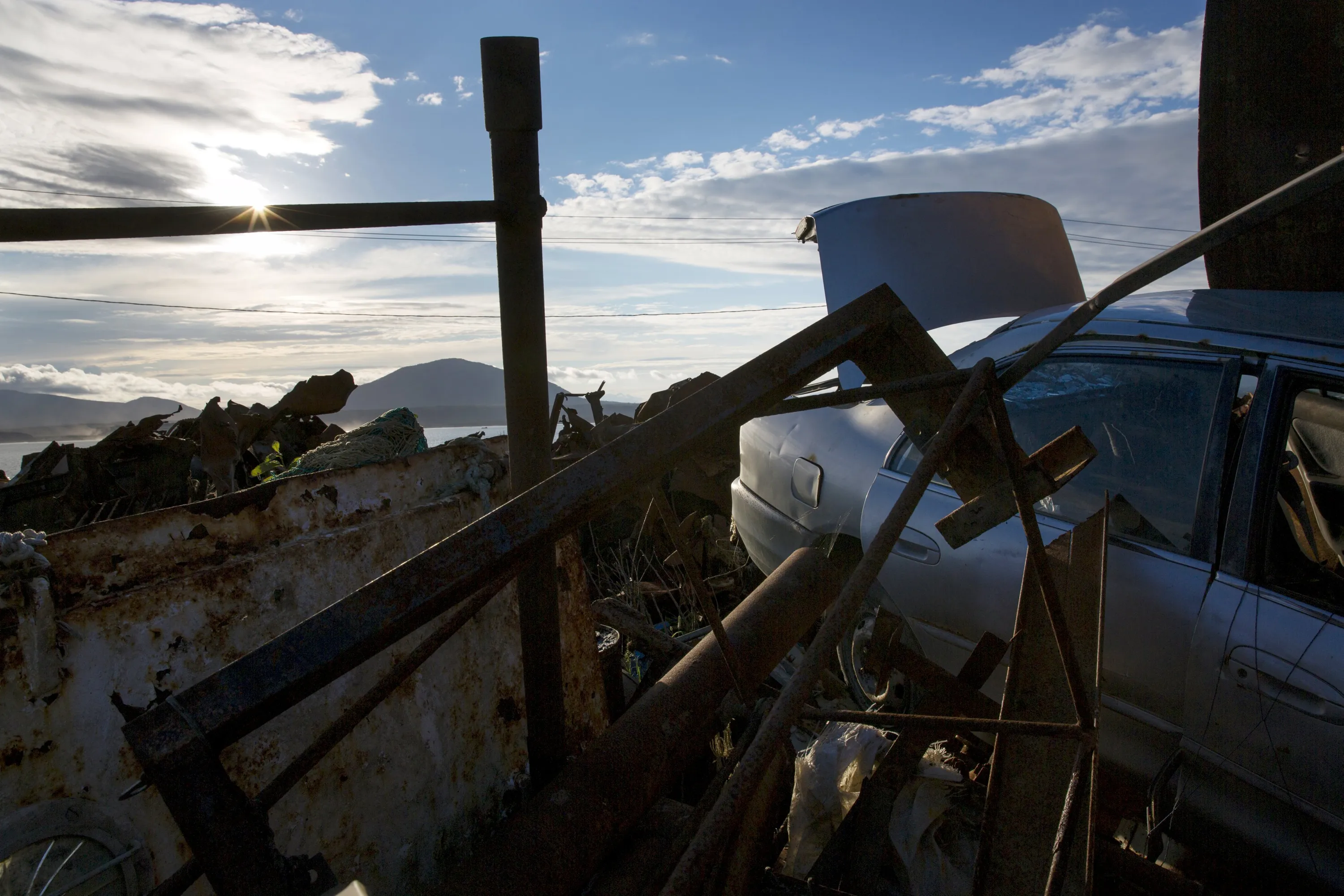Rusty scrap metal and a derelict car are seen piled up in the centre of Yuzhno-Kurilsk, the main settlement on the Southern Kurile island of Kunashir September 15, 2015. (Photo by Thomas Peter/Reuters)