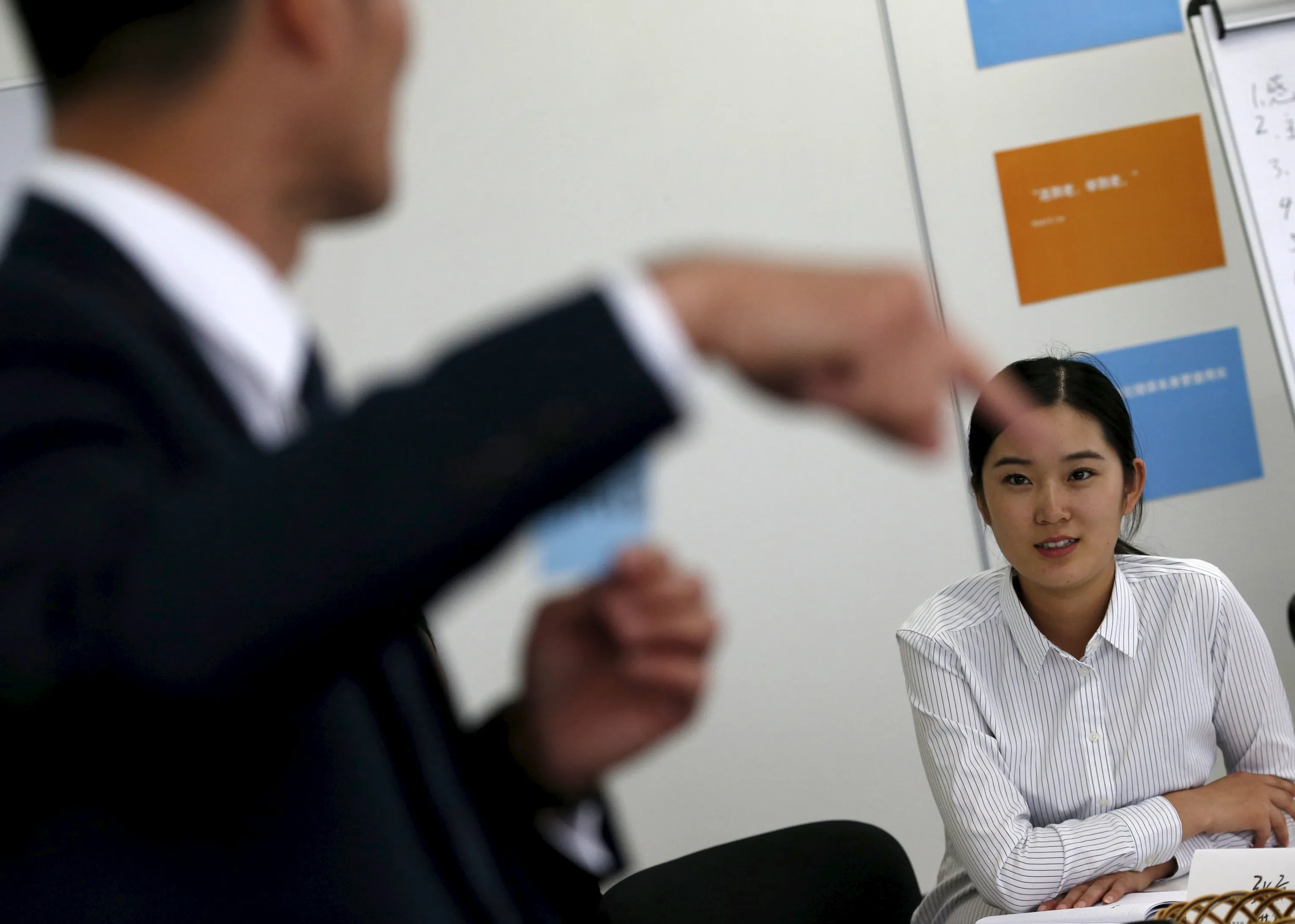 A dealership sales staff listens to a lecture during a sales camp at BMW Group Training Center in Beijing, China, September 9, 2015. (Photo by Kim Kyung-Hoon/Reuters)