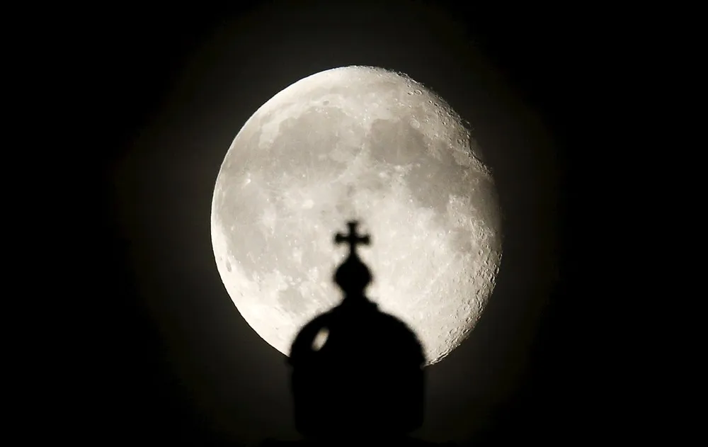 The moon rises next to a cross atop of the Reichstag building in Berlin, Germany, August 2, 2015. (Photo by Fabrizio Bensch/Reuters)