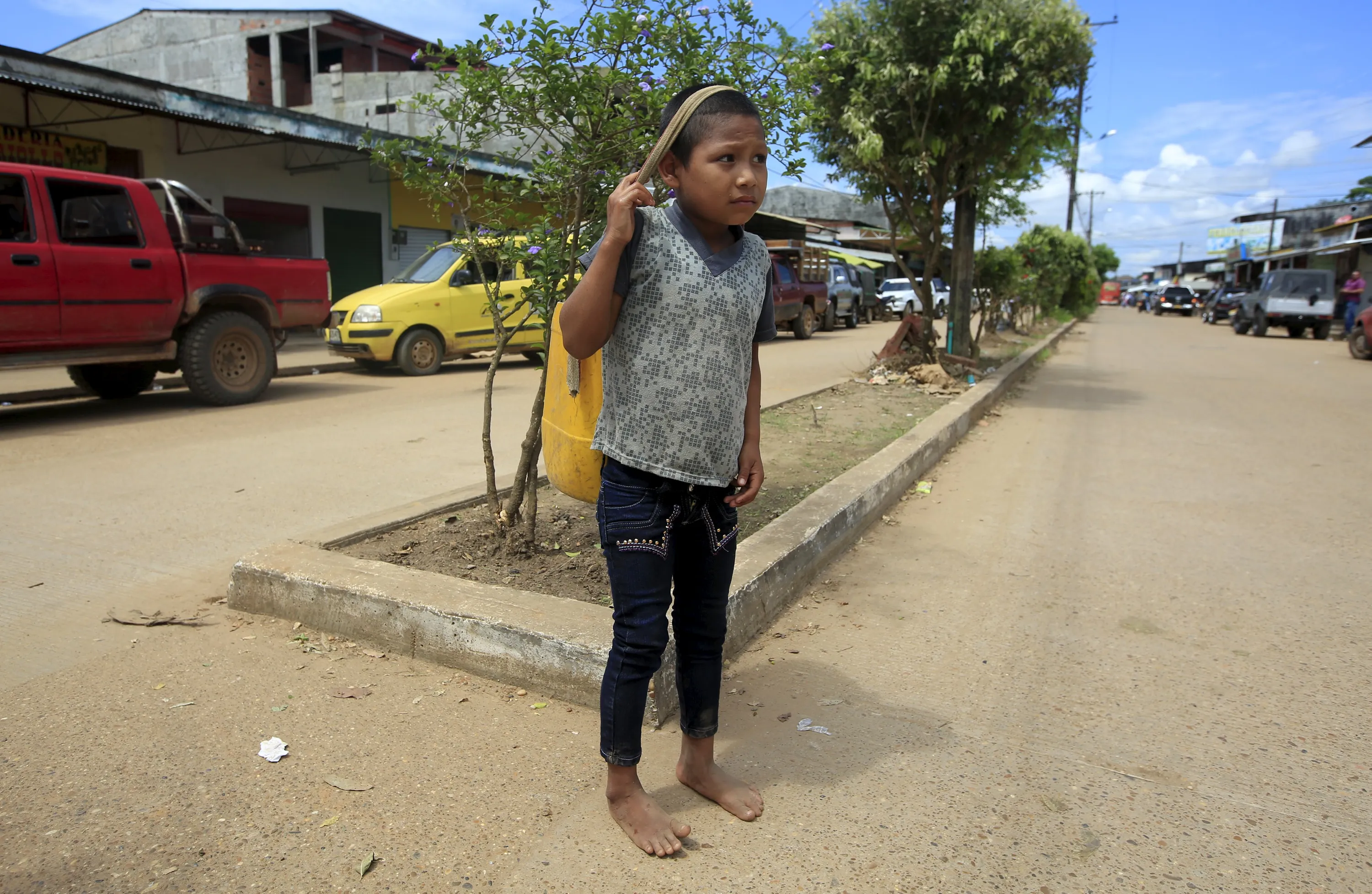 A Colombian Nukak Maku Indian boy is seen on the street in San Jose del Guaviare of Guaviare province, September 4, 2015. (Photo by John Vizcaino/Reuters)