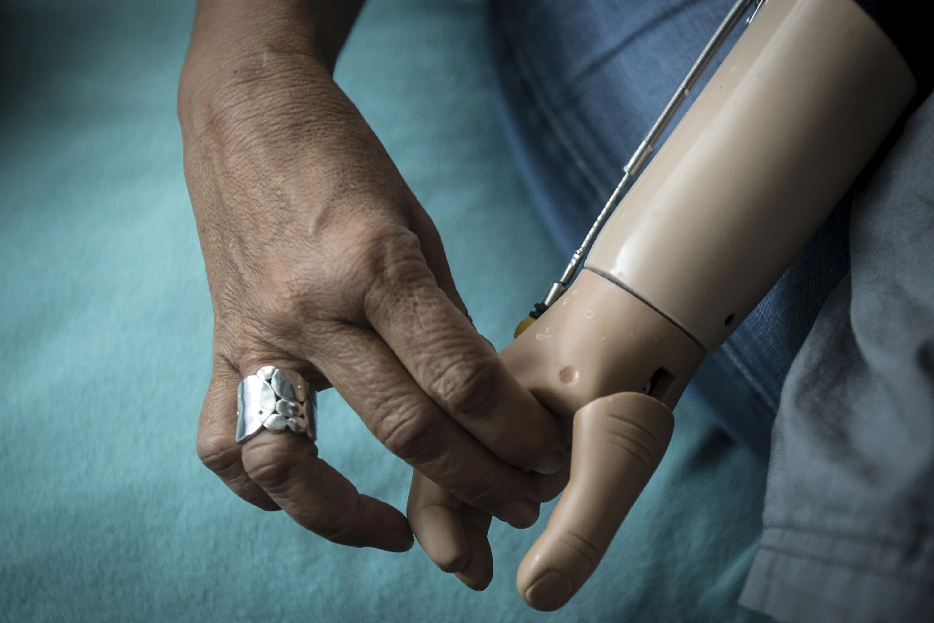 5-year-old Baraka Cosmas (R) from Tanzania holds hands with Elissa Montanati of the Global Medical Relief Fund in Staten Island. (Photo by Carlo Allegri/Reuters)