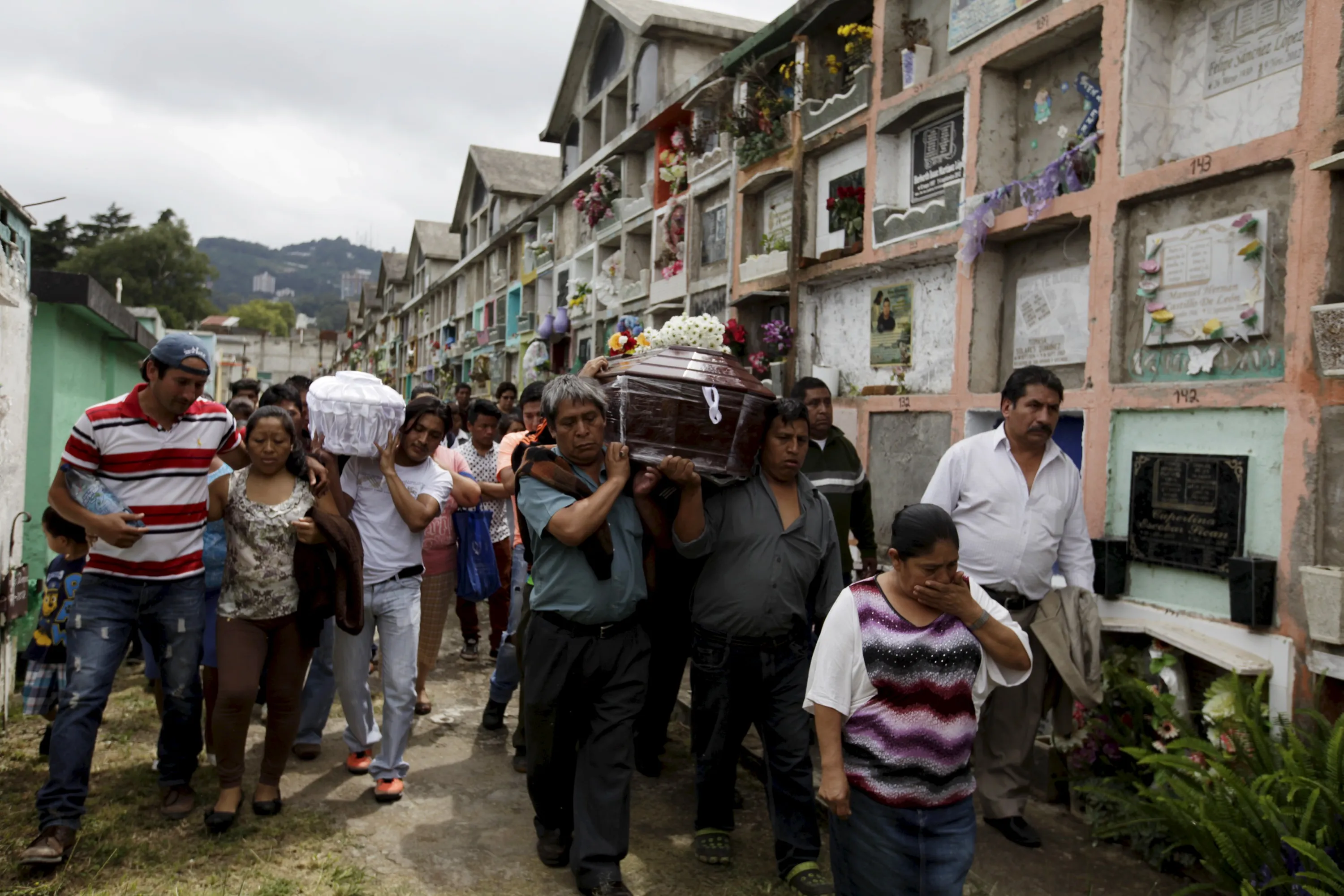 Relatives attend the funeral of two victims of a mudslide in Santa Catarina Pinula, on the outskirts of Guatemala City, October 3, 2015. Rescue workers scrabbled through earth and rubble on Saturday in search of survivors of a massive landslide in Guatemala that killed at least 48 people, even as hopes began to fade for hundreds of others still missing. (Photo by Jose Cabezas/Reuters)
