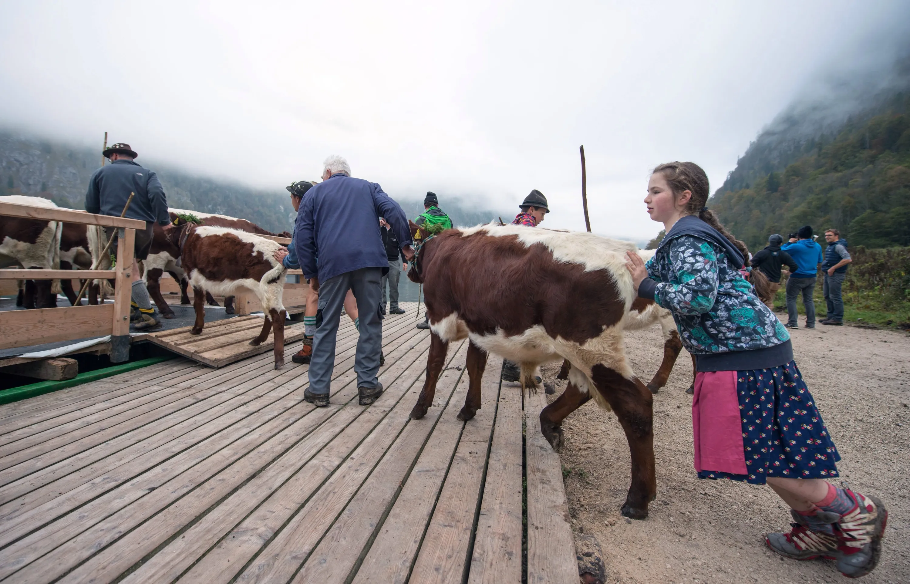 Farmers load their cattle on two connecting boats to ship them over the Bavarian Koenigsee, Germany, on October 6, 2014. (Photo by Michaela Rehle/Reuters)