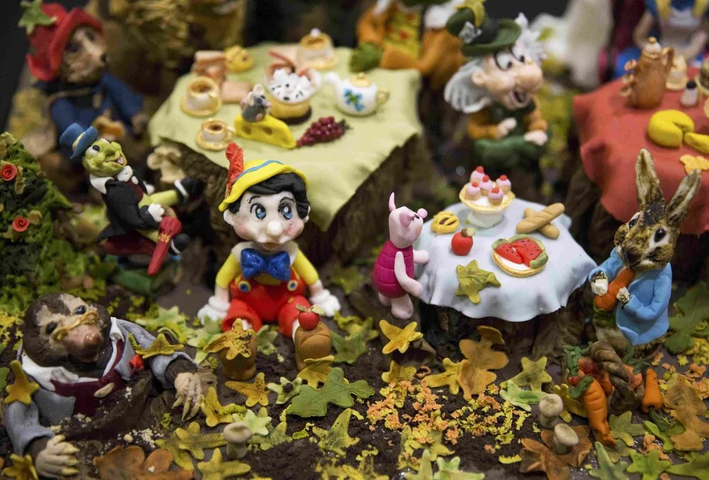 A cake decorated as a variety of children's book characters is displayed at the Cake and Bake show in London, Britain October 3, 2015. (Photo by Neil Hall/Reuters)