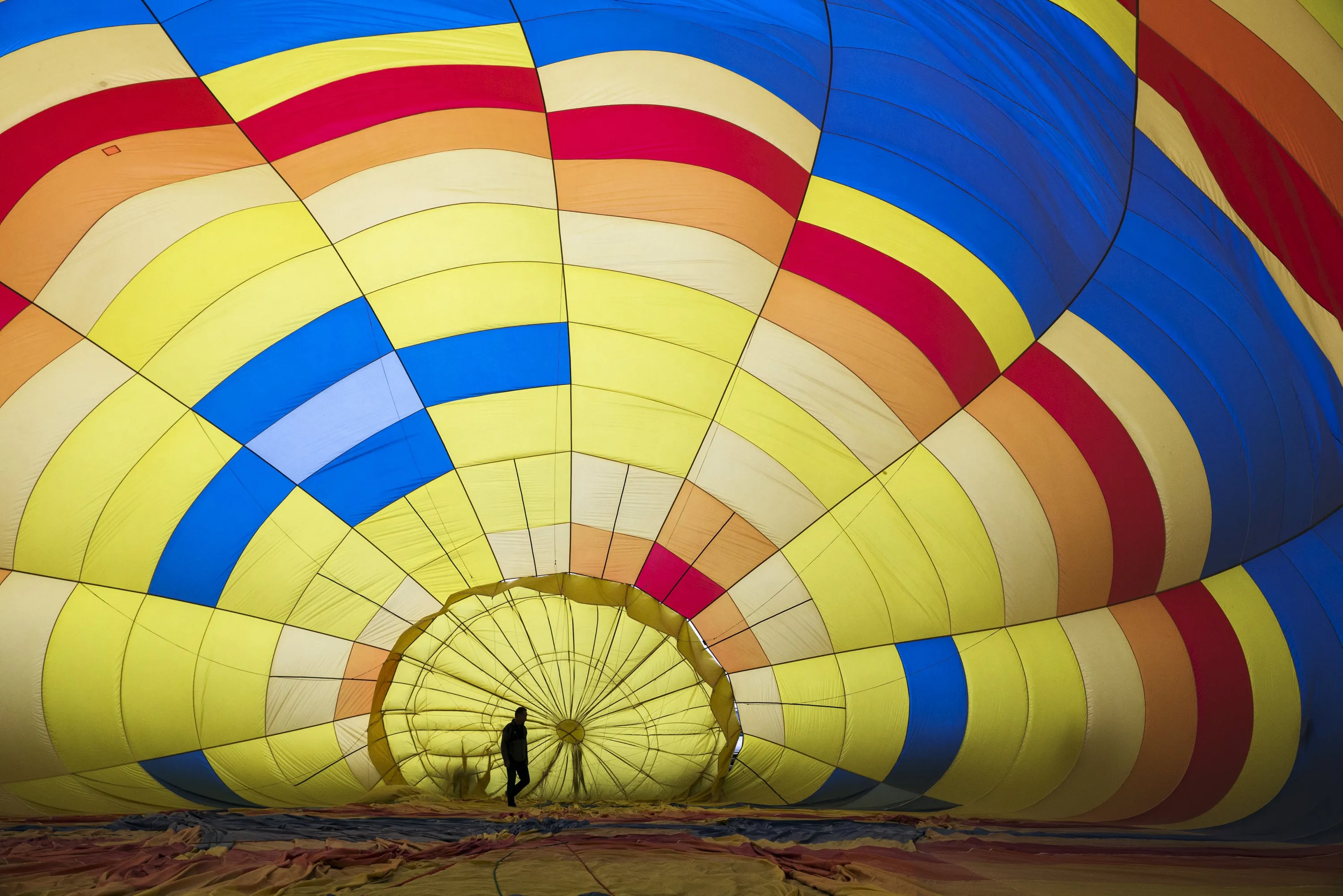 A crew member prepares a hot air balloon for take off during the 2015 Albuquerque International Balloon Fiesta in Albuquerque, New Mexico, October 4, 2015. (Photo by Lucas Jackson/Reuters)