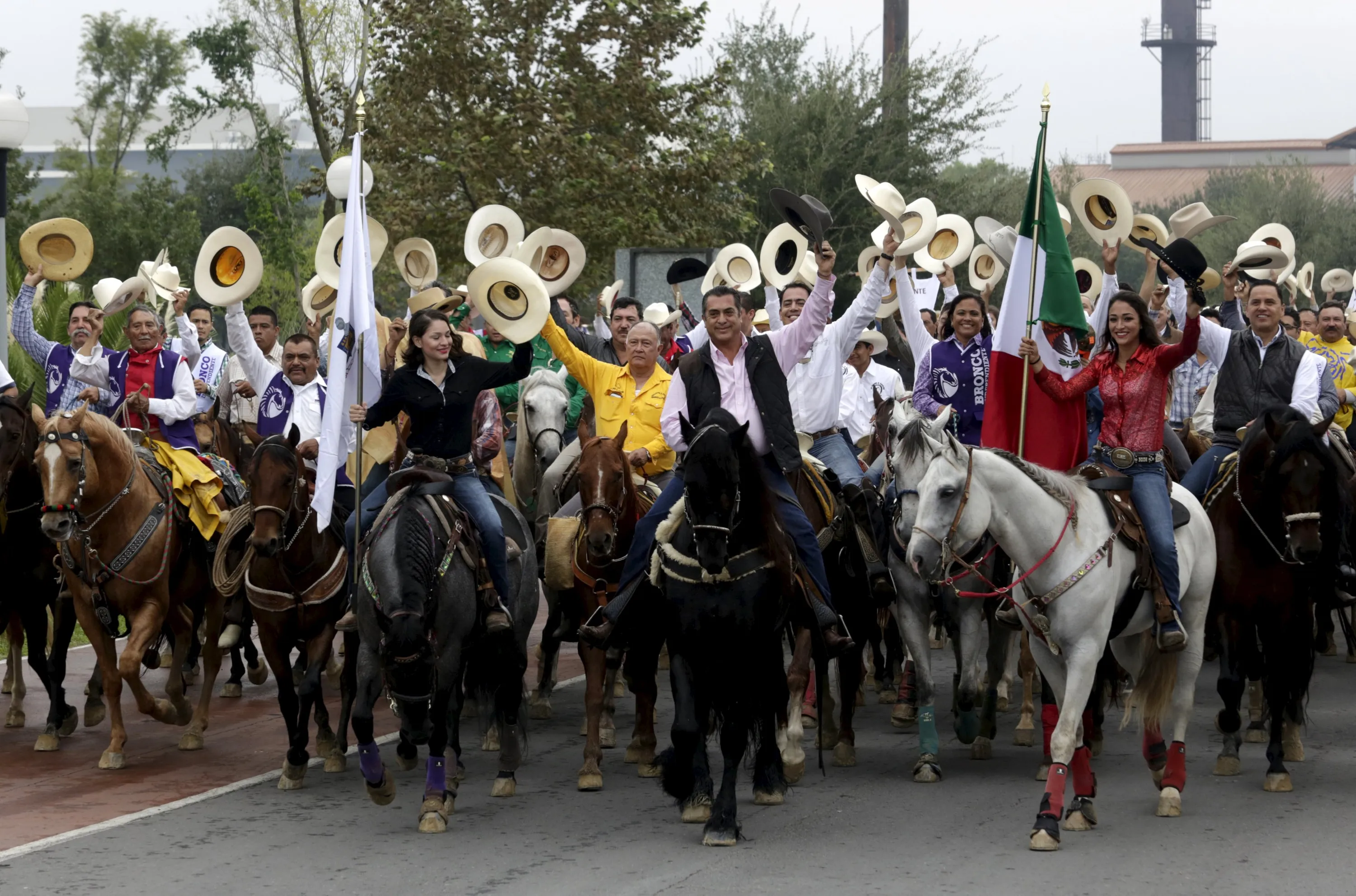 Jaime Rodriguez (C) rides on his horse, accompanied by supporters at Fundidora park, after taking the oath on Saturday as the new governor of the Nuevo Leon state in Monterrey, Mexico October 4, 2015. Rodriguez, a former member of President Enrique Pena Nieto's Institutional Revolutionary Party (PRI), is the first independent candidate to win a state governorship in modern Mexico. (Photo by Daniel Becerril/Reuters)