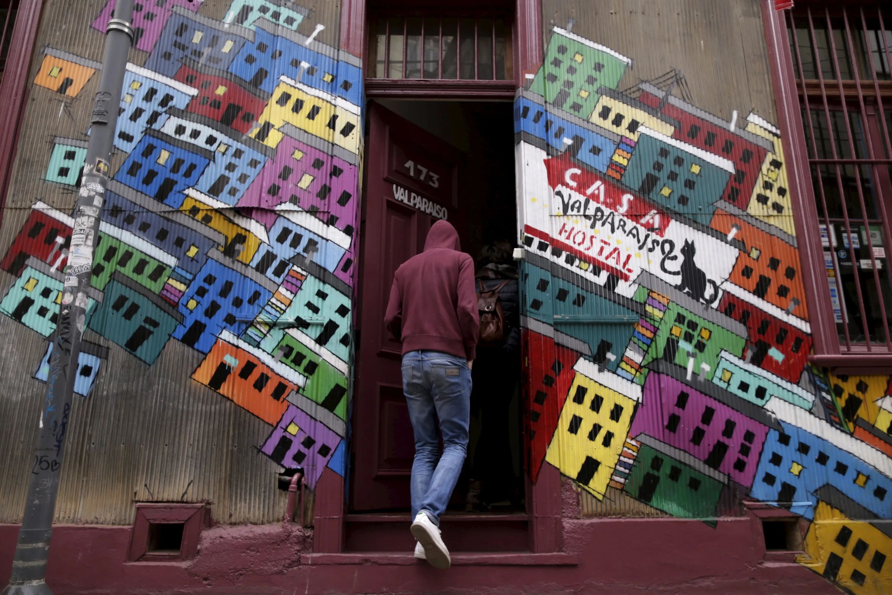 A man enters a house painted with graffiti on a street in Valparaiso, Chile, June 26, 2015. (Photo by Ueslei Marcelino/Reuters)