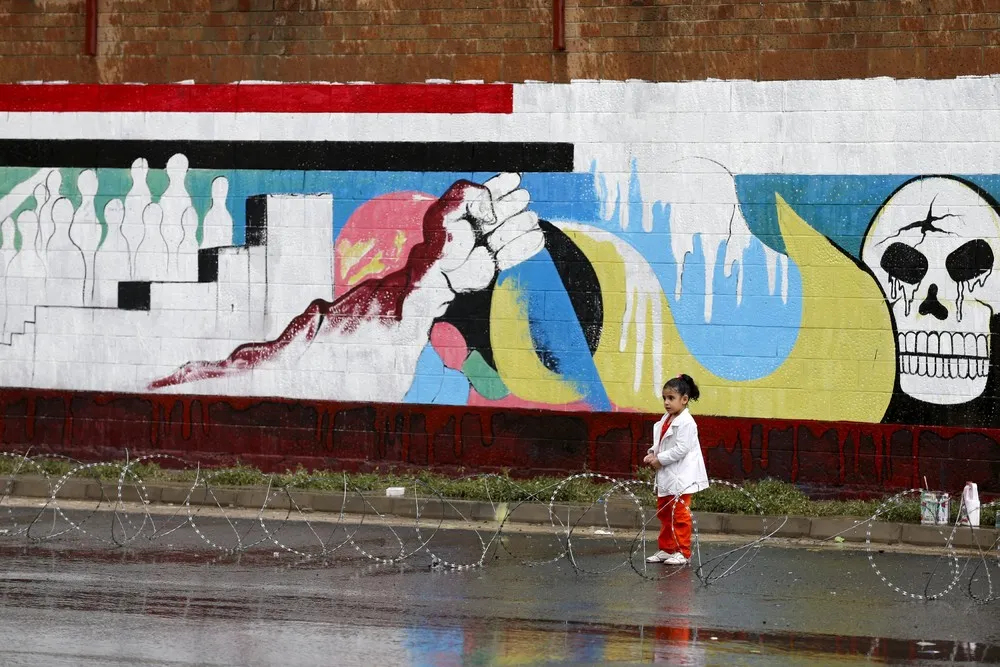 A girl stands in front of graffiti painted by pro-Houthi activists during a campaign against Saudi-led air strikes on the wall of the Saudi embassy in Sanaa August 2, 2015. (Photo by Khaled Abdullah/Reuters