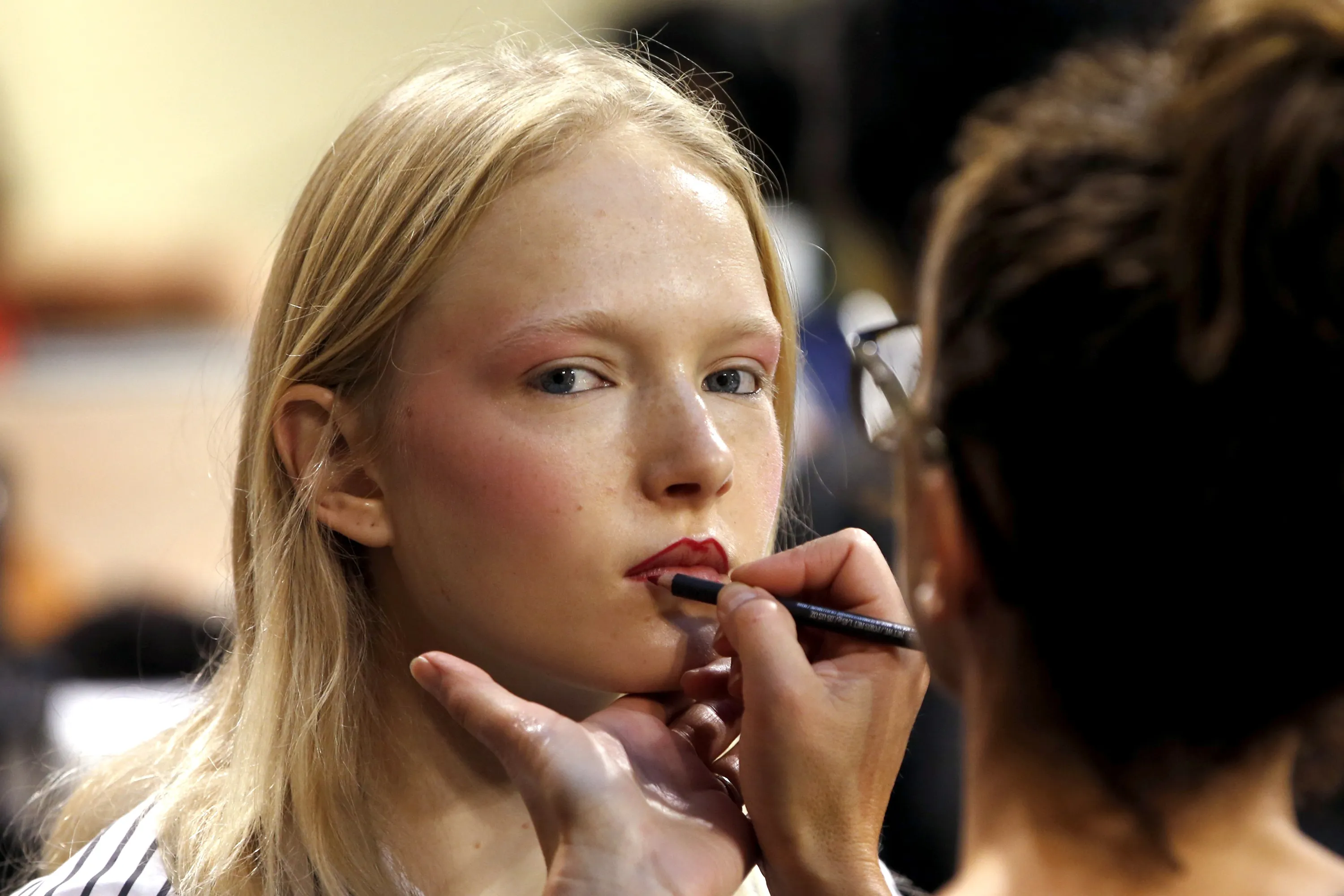 A model has her makeup done backstage before designer Hussein Chalayan Spring/Summer 2016 women's ready-to-wear collection show during the Fashion Week in Paris, France, October 2, 2015. (Photo by Charles Platiau/Reuters)