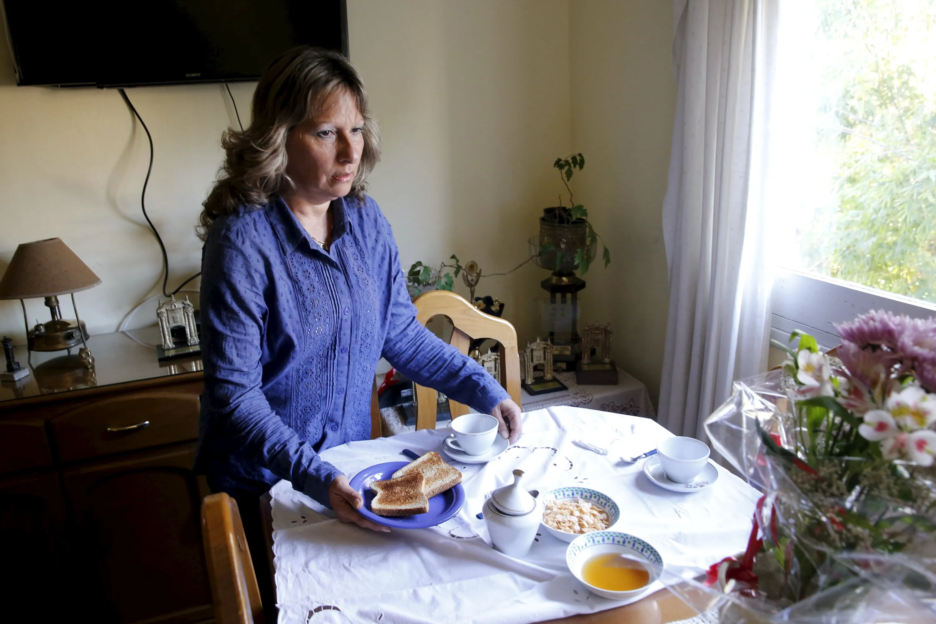 Laura Paipo, first blind principal in Uruguay prepares breakfast for her husband Jorge Albarracin at their home in Montevideo, September 18, 2015. Paipo, 55, who took office on August 10, 2015 became the first blind principal of a special school which specializes in the education of visually impaired students. (Photo by Andres Stapff/Reuters)
