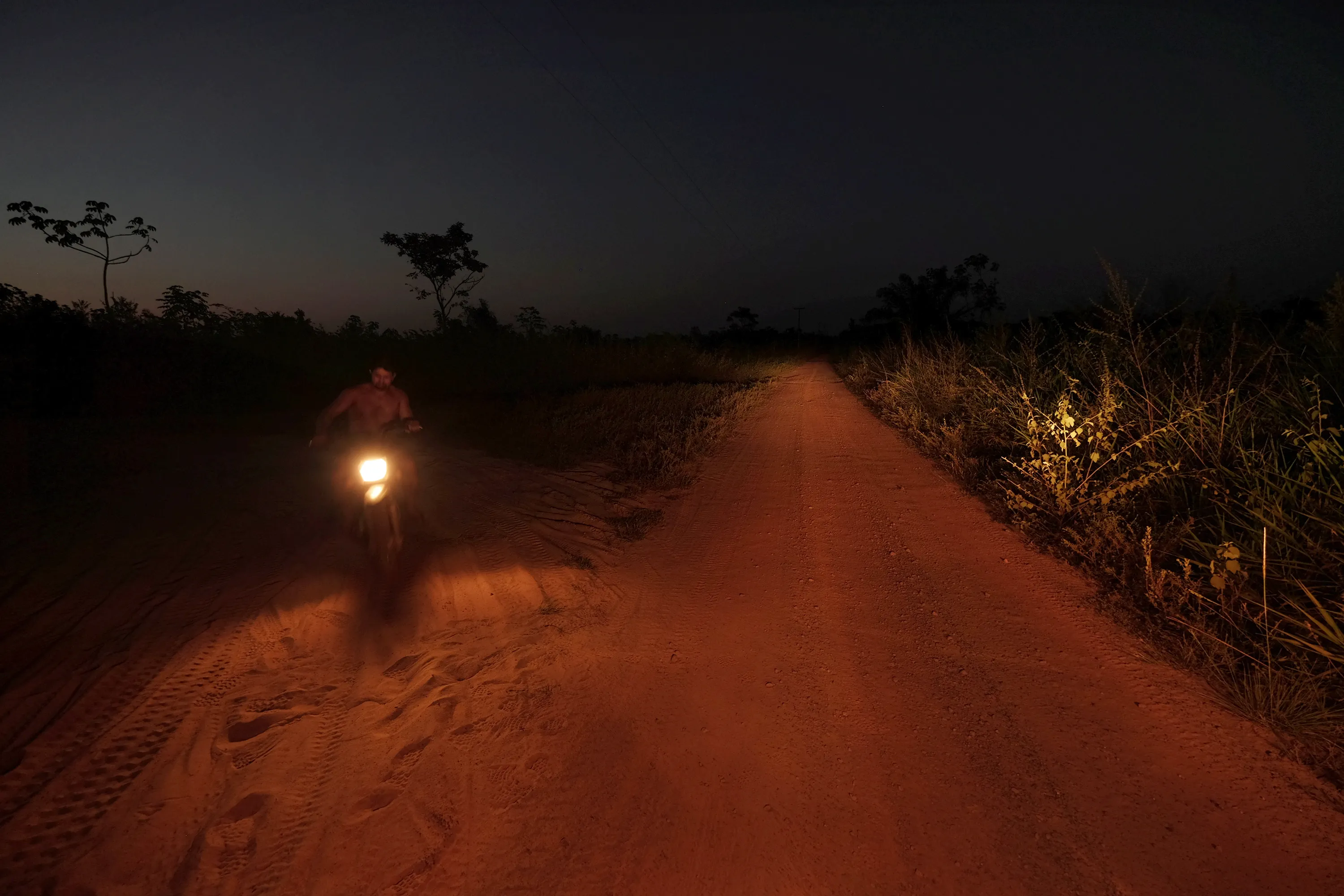 A motorcyclist travels along the road where Eusébio Ka'Apor, 42, was shot and killed near Alto Turiacu Reserve, Maranhão, Brazil on August 12, 2015. Ka'Apor, a community leader in Alto Turiaçu, was killed in April after being ambushed while riding on the back of a motorcycle. Loggers have been stealing hardwood trees from indigenous lands in Brazil. Members of the Ka'Apor tribe have been expelling loggers from the reserve which has led to threats and violence. (Photo by Bonnie Jo Mount/The Washington Post)