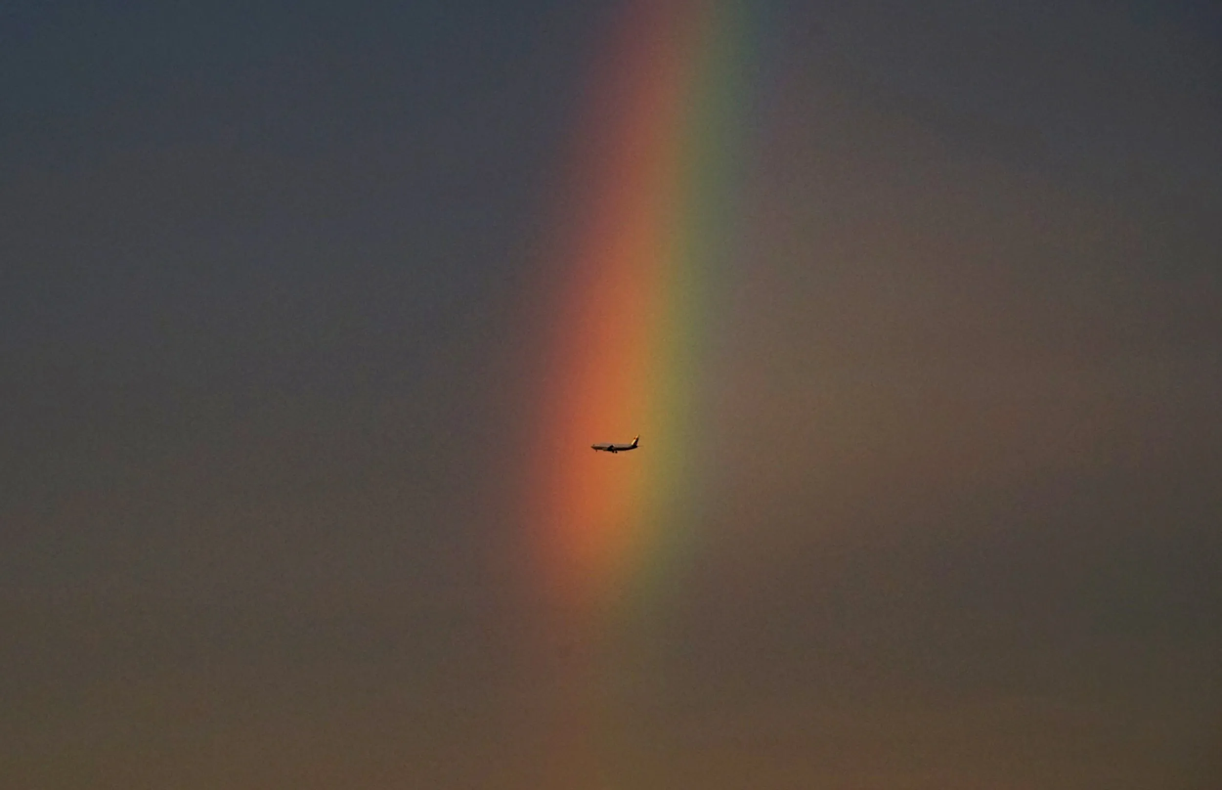 An airplane flies past a rainbow at dusk in Beijing, China, August 3, 2015. (Photo by Reuters/Stringer)