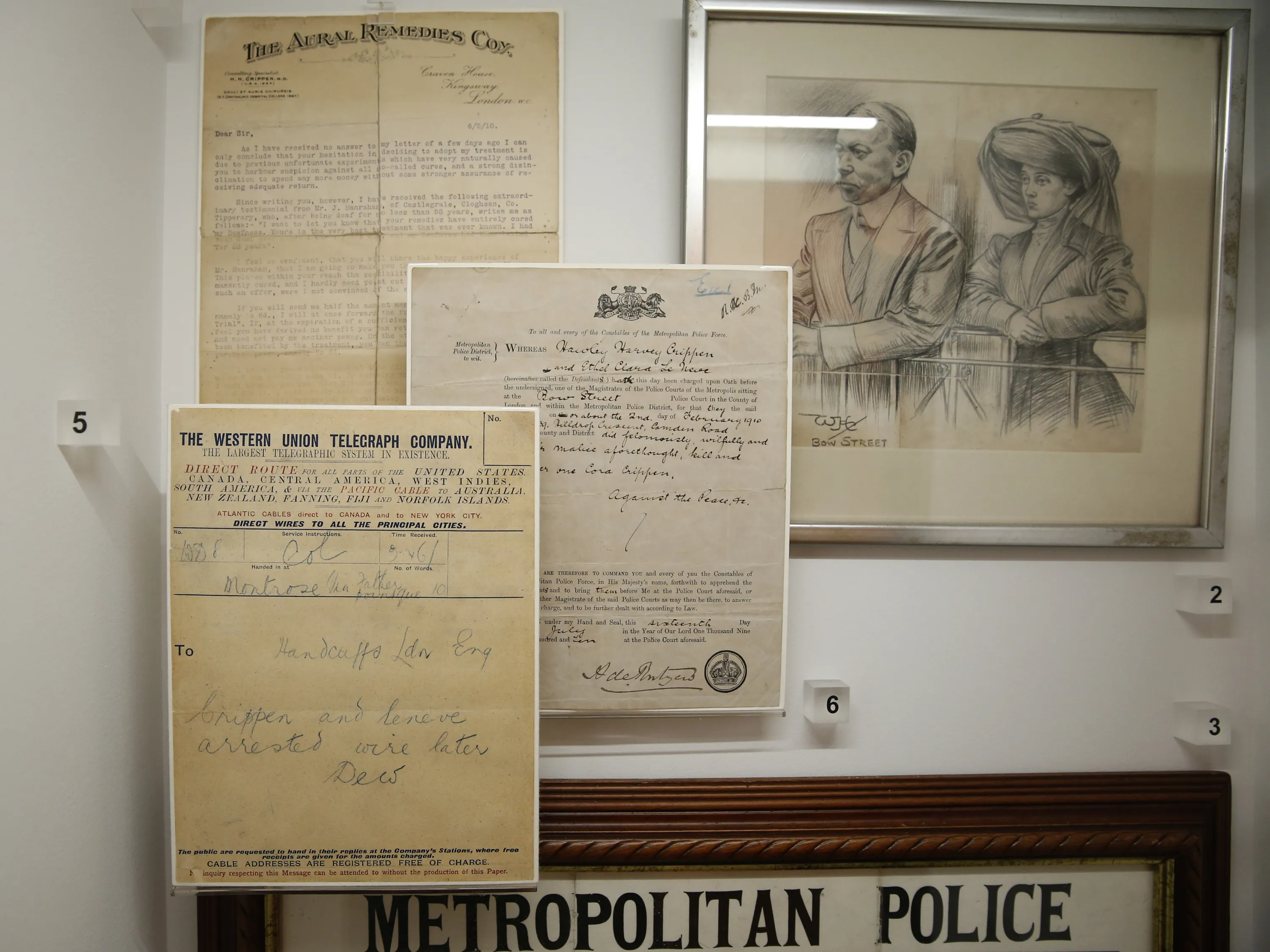 Telegrams and a picture of Harvey Crippen and his accomplice Ethel Neve, which pertain to his capture for the murder of Crippen's wife Cora in 1910, form part of the Crime Museum Uncovered exhibition at the Museum of London in the City of London, Wednesday, October 7, 2015. Crippen was infamous for being the first criminal to be captured with the aid of wireless telegraphy. (Photo by Alastair Grant/AP Photo)