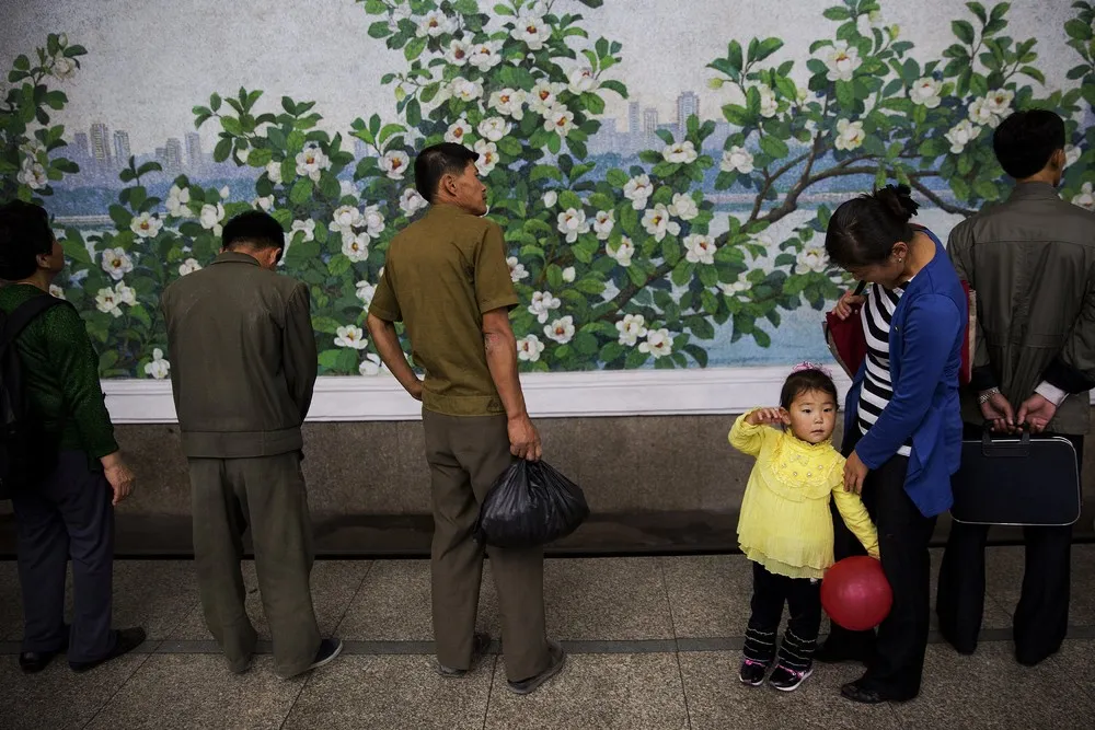 A girl holds a red balloon as she and others wait for a train at a subway station visited by foreign reporters during a government organised tour in Pyongyang, North Korea October 9, 2015. (Photo by Damir Sagolj/Reuters)