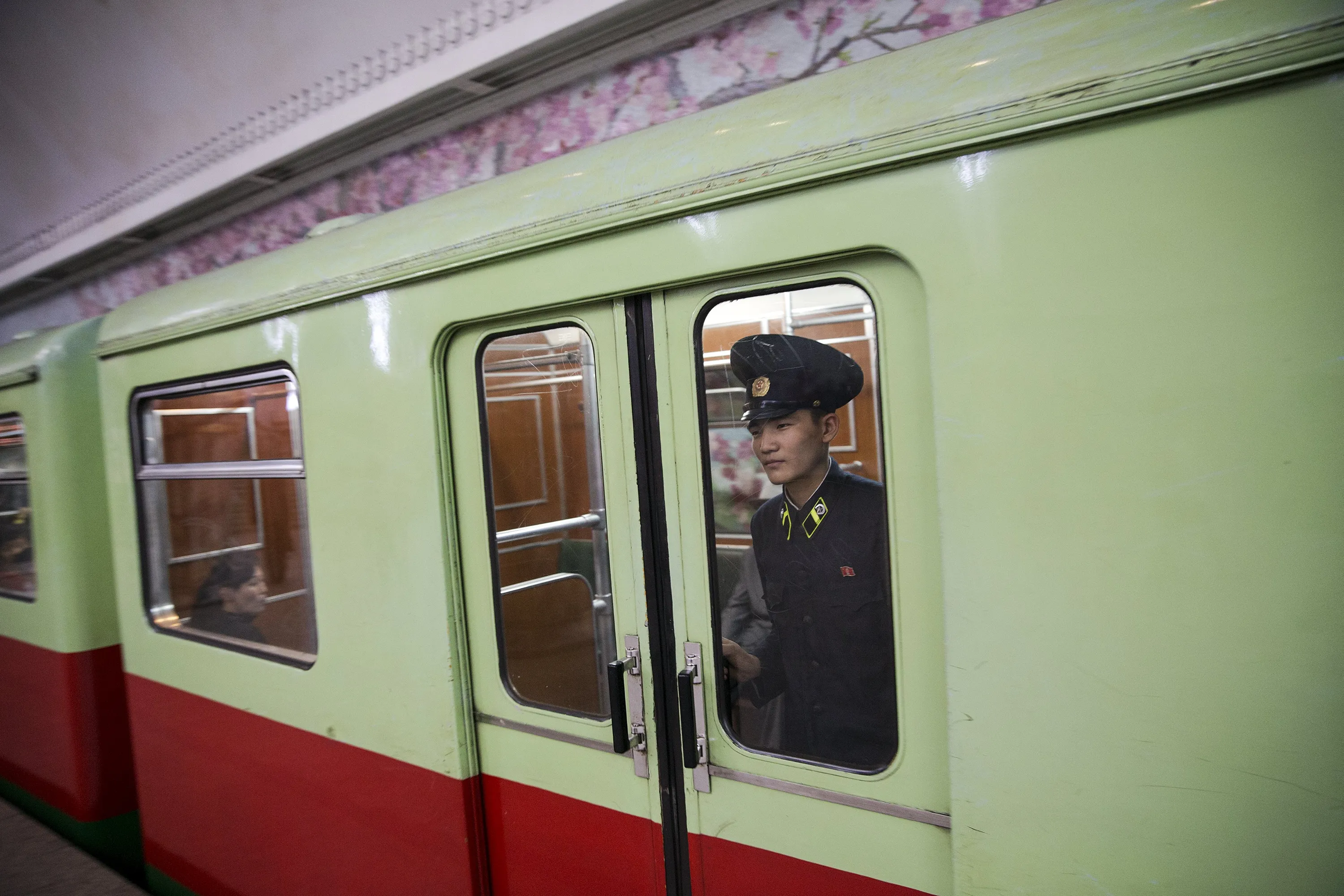 A railway worker looks from inside a train leaving a subway station visited by foreign reporters during a government organised tour in Pyongyang, North Korea October 9, 2015. (Photo by Damir Sagolj/Reuters)