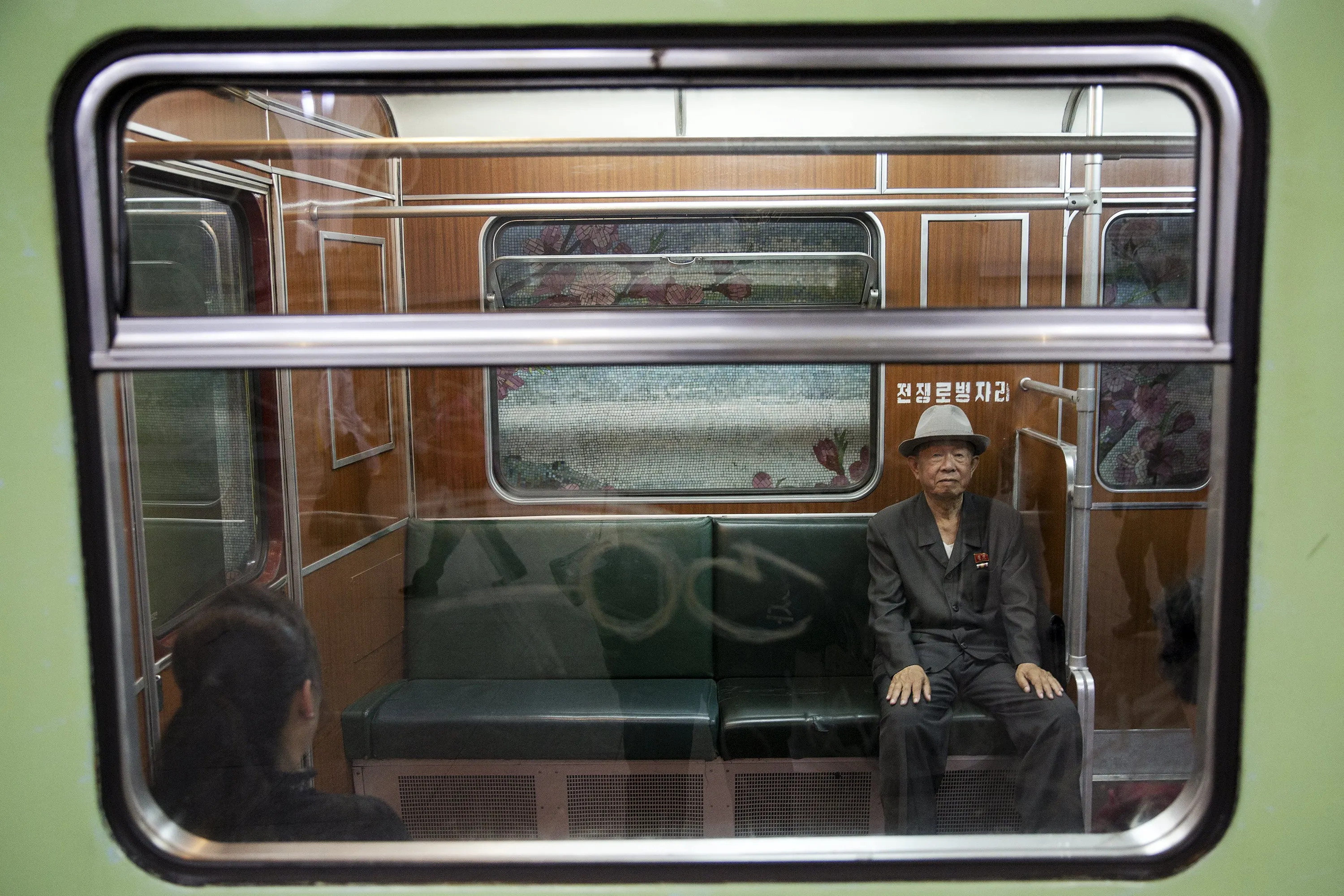 A man looks from inside a train that stopped at a subway station visited by foreign reporters during a government organised tour in Pyongyang, North Korea October 9, 2015. (Photo by Damir Sagolj/Reuters)