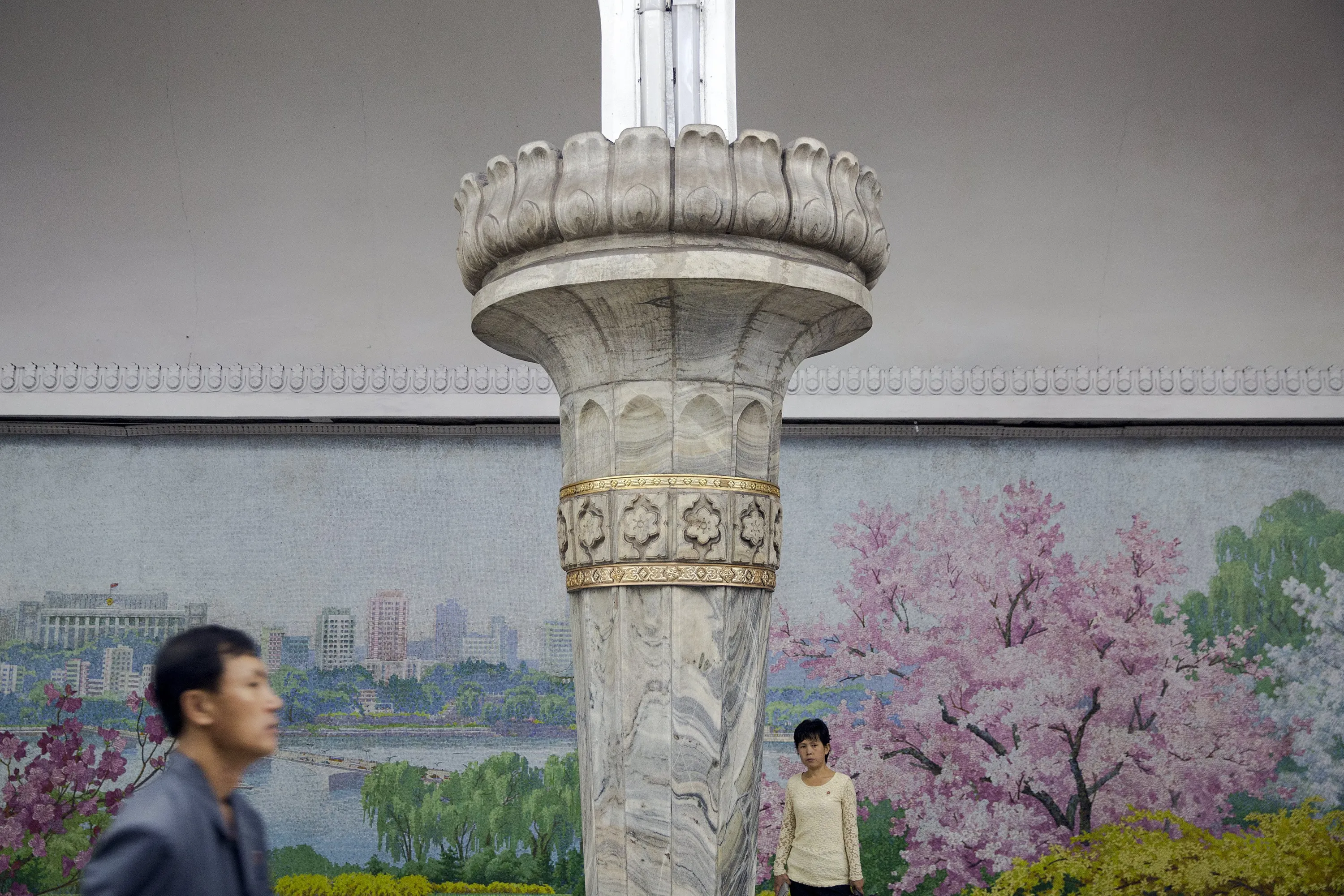 A woman waits for a train as man walks through a subway station visited by foreign reporters during a government organised tour in Pyongyang, North Korea October 9, 2015. (Photo by Damir Sagolj/Reuters)