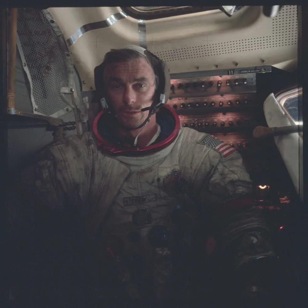 Astronaut Eugene A. Cernan, Apollo 17 commander, is photographed inside the lunar module on the lunar surface following the second extravehicular activity (EVA) of his mission in this December 12, 1972 NASA handout photo. (Photo by Reuters/NASA)