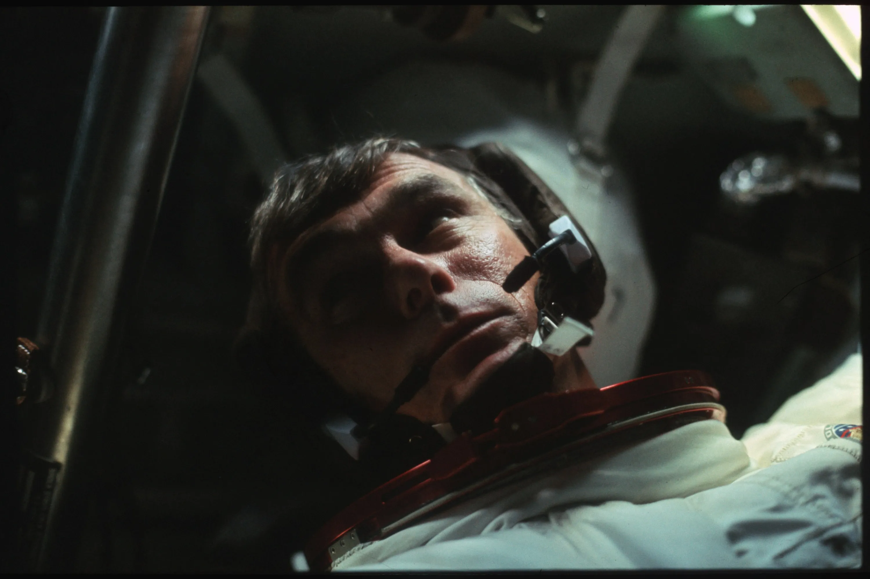 Astronaut Gene Cernan is pictured in the Command Module during the outbound trip from the moon during the Apollo 17 mission in this December, 1972 NASA handout photo. (Photo by Reuters/NASA)