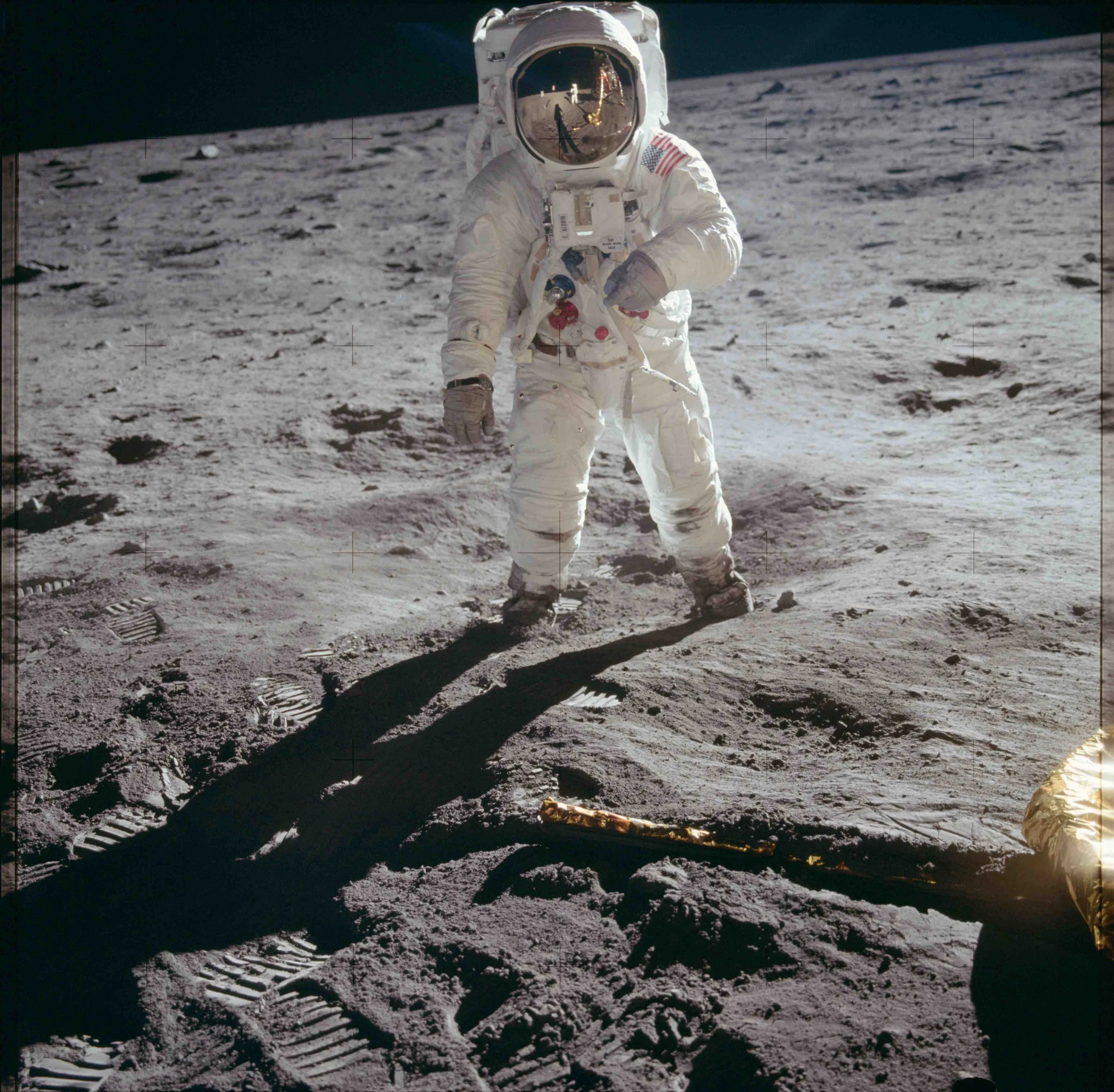Astronaut Edwin E. Aldrin Jr., lunar module pilot, walks on the surface of the moon near the leg of the Lunar Module (LM) "Eagle" during the Apollo 11 extravehicular activity (EVA) in this July 20, 1969 NASA handout photo. (Photo by Reuters/NASA)