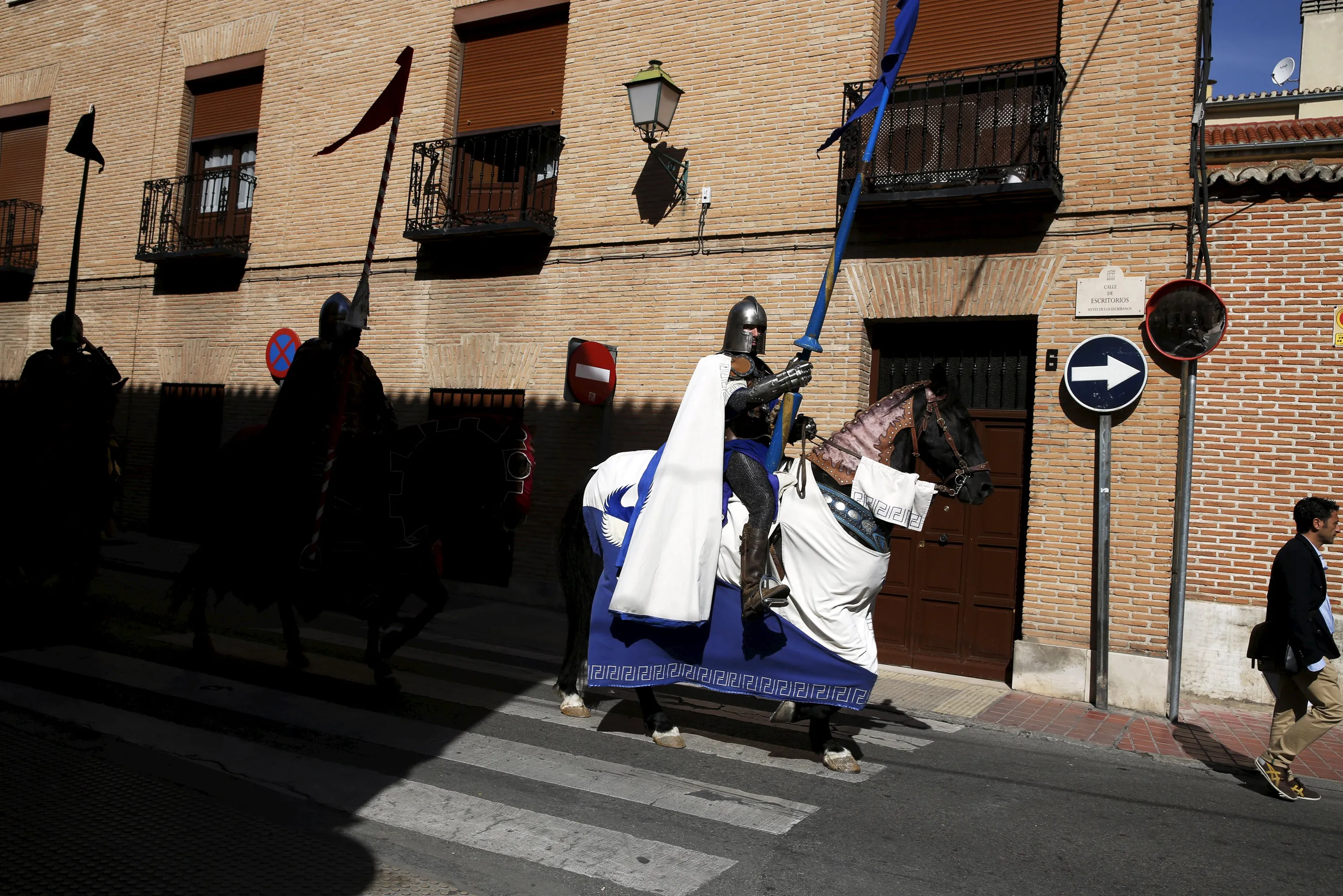Actors performing as knights parade during the annual Cervantes market (Mercado Cervantino) in the hometown of famous Spanish writer Miguel de Cervantes, Alcala de Henares, Spain, October 9, 2015. (Photo by Susana Vera/Reuters)