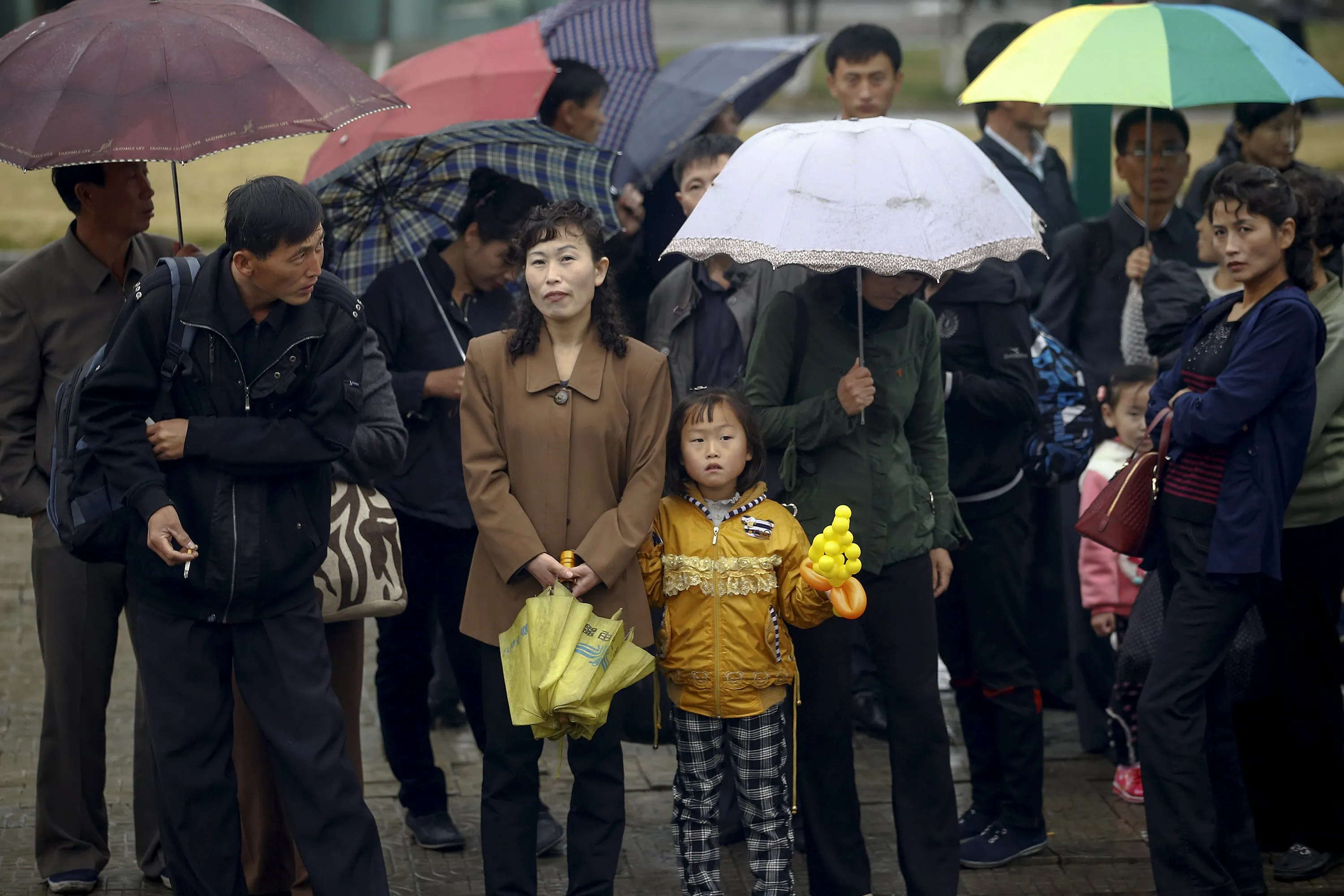 People wait for a bus under the rain in Pyongyang's suburb, October 11, 2015. (Photo by Damir Sagolj/Reuters)