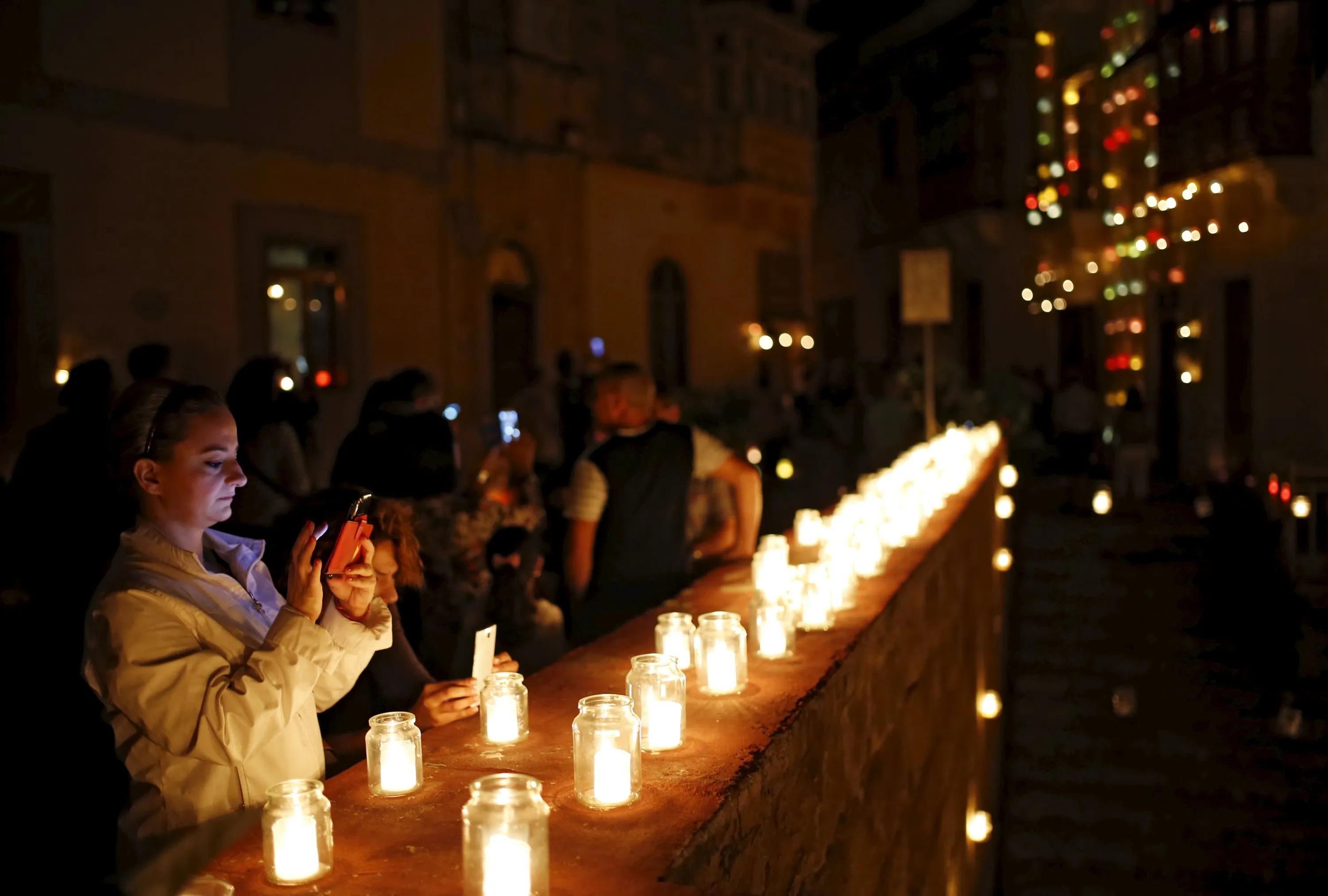 A woman looks at her smartphone during "Birgu by Candlelight" in the medieval city of Birgu, also known as Vittoriosa, outside Valletta, Malta, October 10, 2015. During the annual event, most street lights are switched off and the city is lit up by candlelight, creating a magical ambience, according to its local council. (Photo by Darrin Zammit Lupi/Reuters)