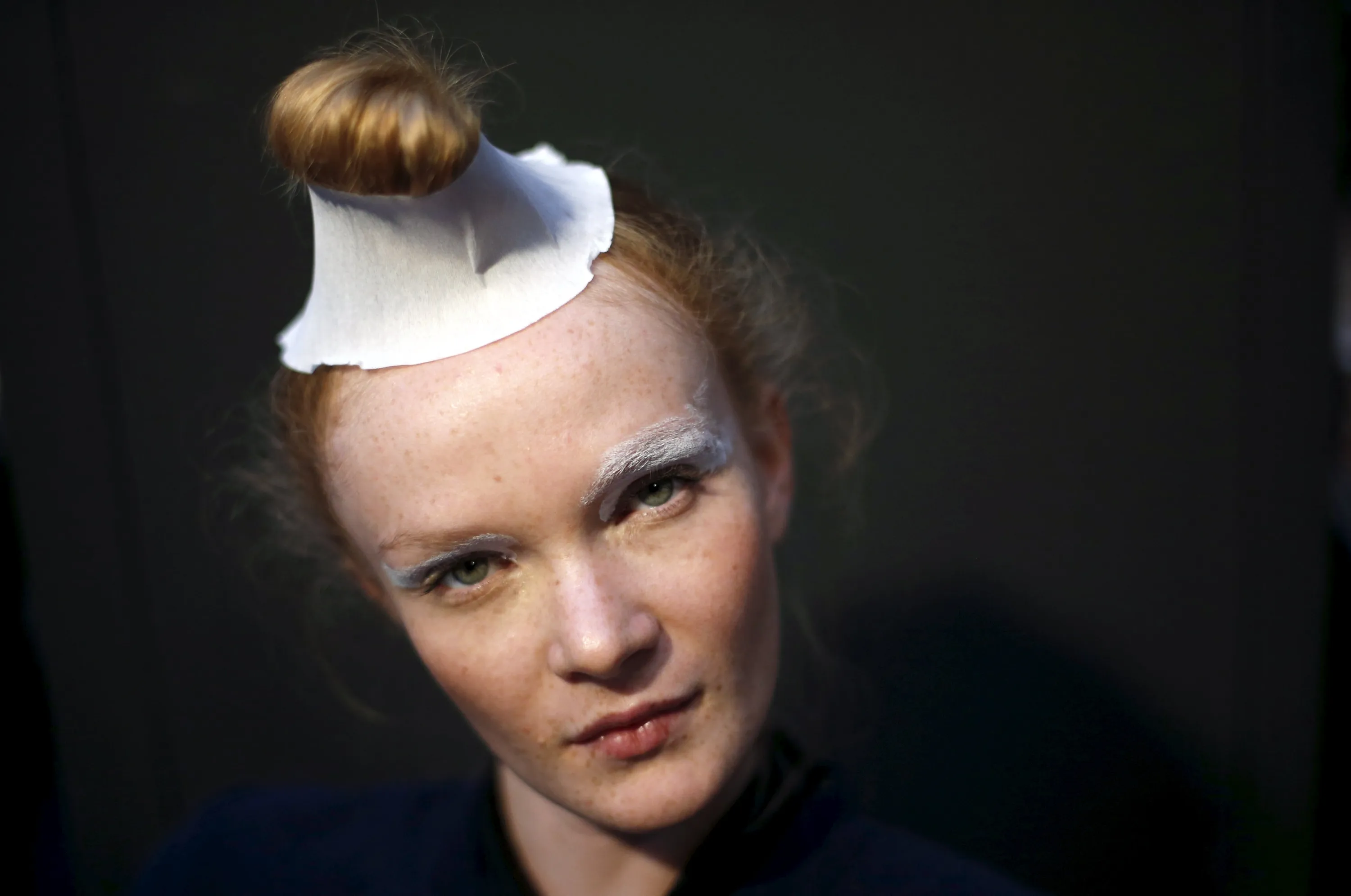 A model poses while waiting backstage before the Christophe Sauvat collection show during Lisbon Fashion Week, Portugal October 10, 2015. (Photo by Rafael Marchante/Reuters)