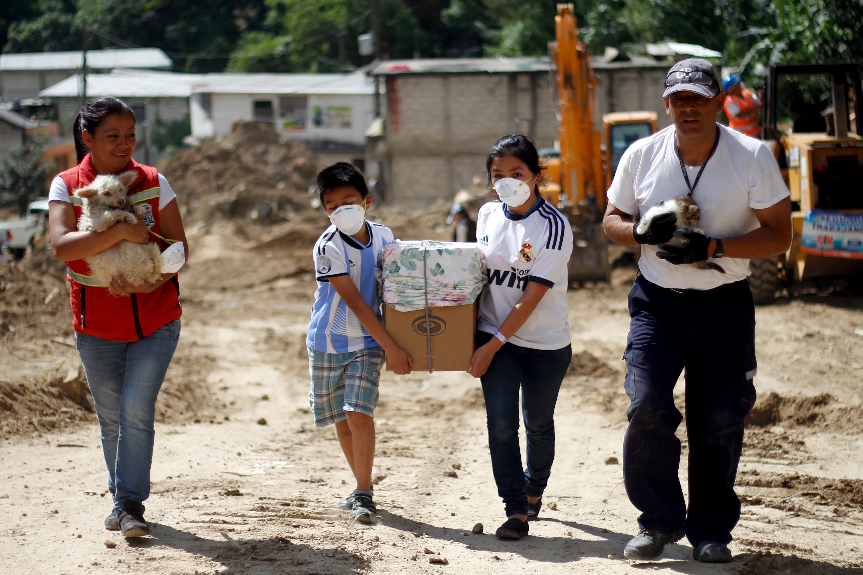 Residents carry their belongings and pets, as they voluntarily evacuate from an area affected by a mudslide in Santa Catarina Pinula, on the outskirts of Guatemala City, October 11, 2015. At least 253 bodies have been recovered after a massive landslide buried part of a town in Guatemala last week, with 374 people still unaccounted for, national disaster agency Conred said on Friday. (Photo by Josue Decavele/Reuters)