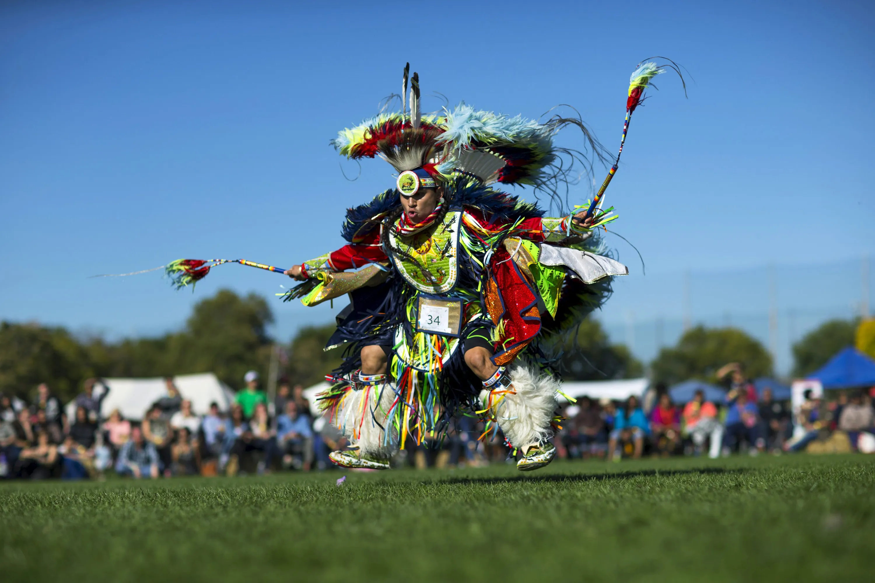 A reveller dances during a "pow-wow" celebrating the Indigenous Peoples' Day Festival in Randalls Island, New York, October 11, 2015. (Photo by Eduardo Munoz/Reuters)