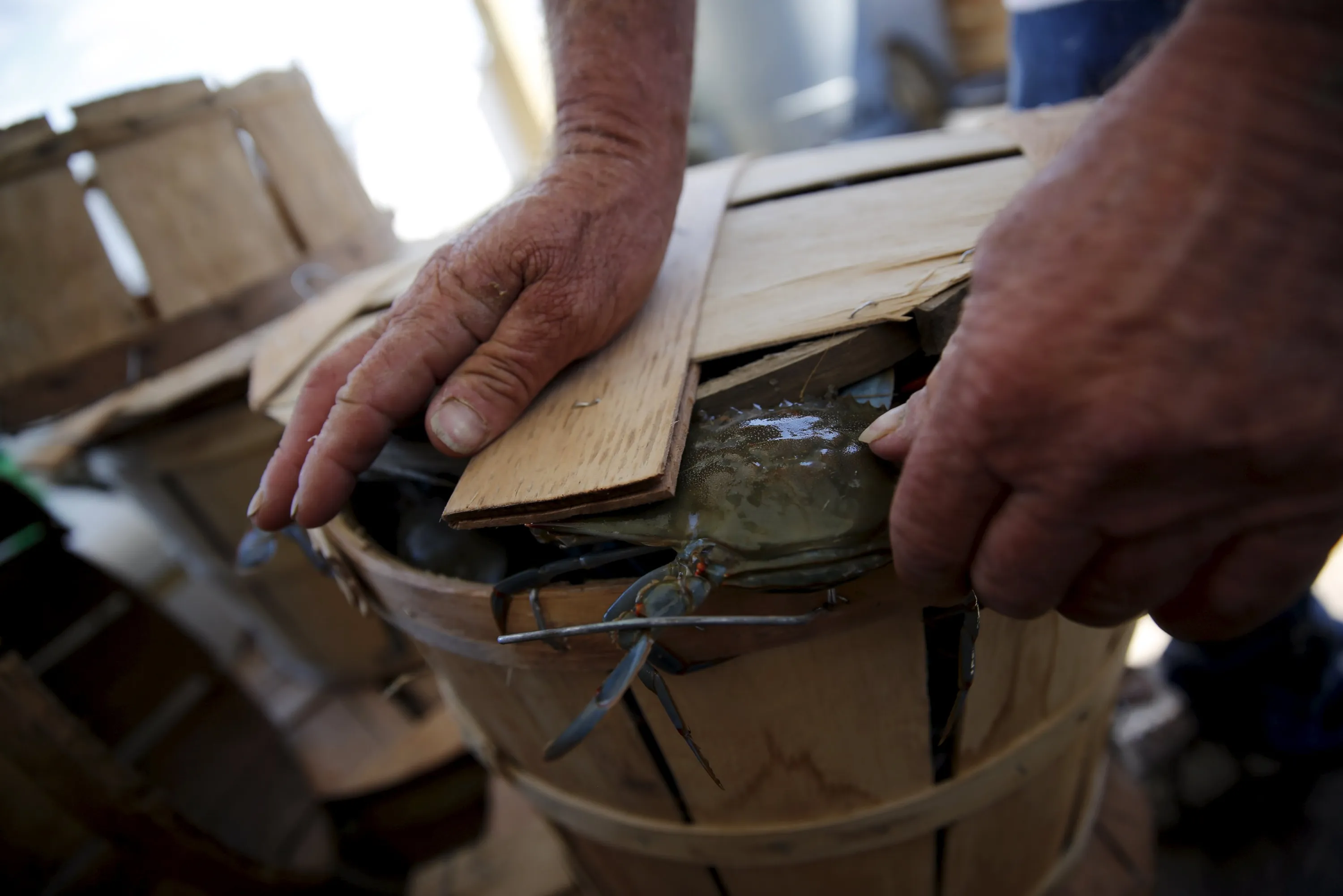 Professional waterman Danny Richardson tries to fit one more crab into a bushel basket as he works a trot line on the Choptank River near Cambridge, Maryland August 28, 2015. Richardson and his partner's fishing licenses allowed them to catch up to 13 bushels of crabs that day; the daily limit can vary during the season. (Photo by Jonathan Ernst/Reuters)