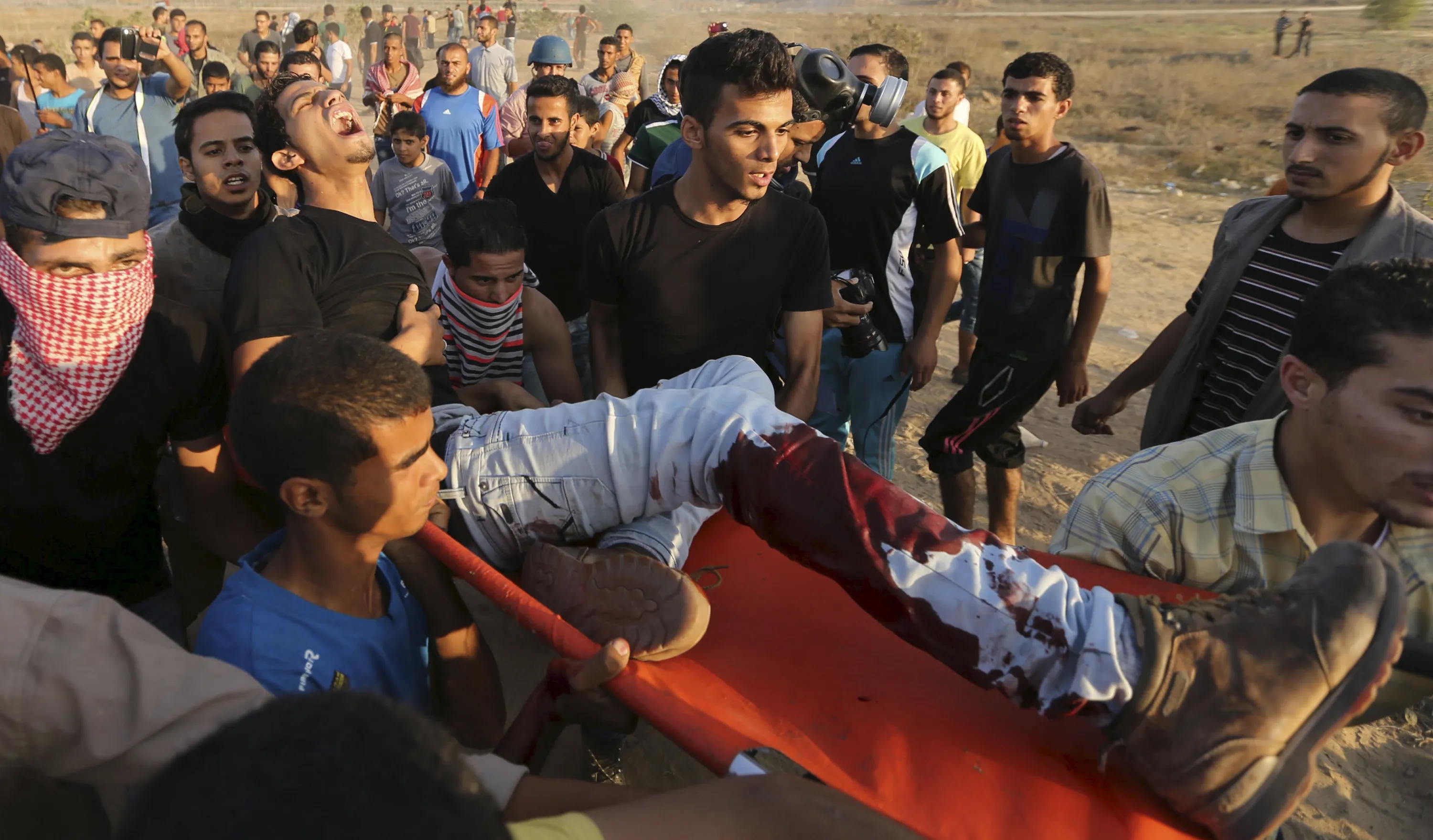 A wounded Palestinian protester is evacuated after he was shot by Israeli troops near the border between Israel and Central Gaza Strip October 17, 2015. At least 40 Palestinians and seven Israelis have died in more than two weeks of unrest, which was in part triggered by Palestinians' anger over what they see as increased Jewish encroachment on Jerusalem's al-Aqsa mosque compound. (Photo by Ibraheem Abu Mustafa/Reuters)