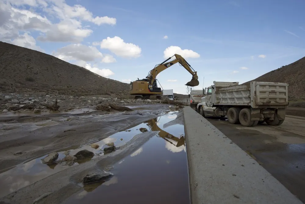 Workers dig out cars and trucks mired in mud and debris on State Route 58 near Tehachapi, California, about 60 miles (97 km) outside of Los Angeles October 17, 2015. (Photo by David McNew/Reuters)
