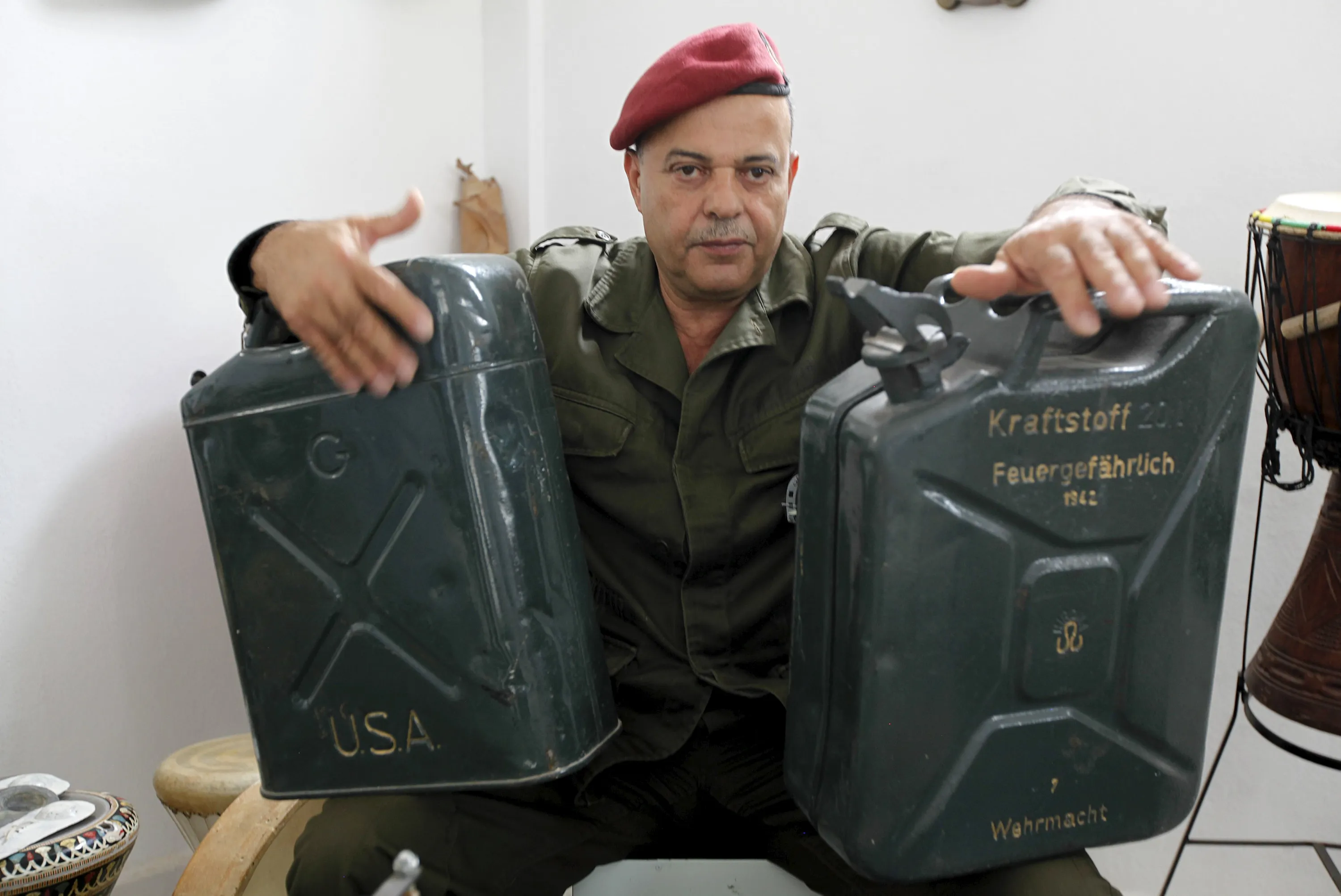 Tunisian Army retiree Belgacem Majri plays music using homemade musical instruments that he built using arms such as bombs and missiles, in Tunis, Tunisia October 20, 2015. (Photo by Anis Mili/Reuters)