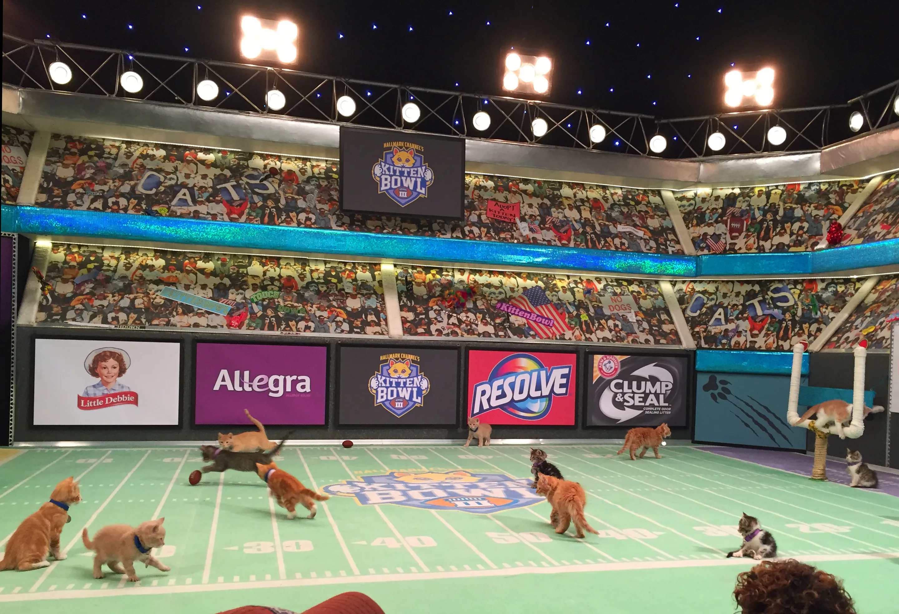 Kittens play on a mini football field during the taping of "Kitten Bowl III," on Wednesday, October 21, 2015, in New York. The program will be broadcast on The Hallmark Channel on Super Bowl Sunday, Feb. 7, 2016. (Photo by Leanne Italie/AP Photo)