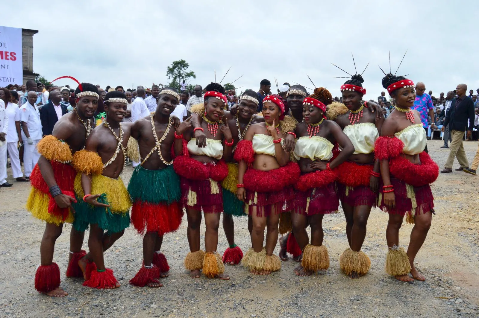 Members of a cultural troupe pose for a picture during the groundbreaking ceremony for the construction of a new superhighway in Cross river state, Nigeria, October 20, 2015. (Photo by Reuters/Stringer)