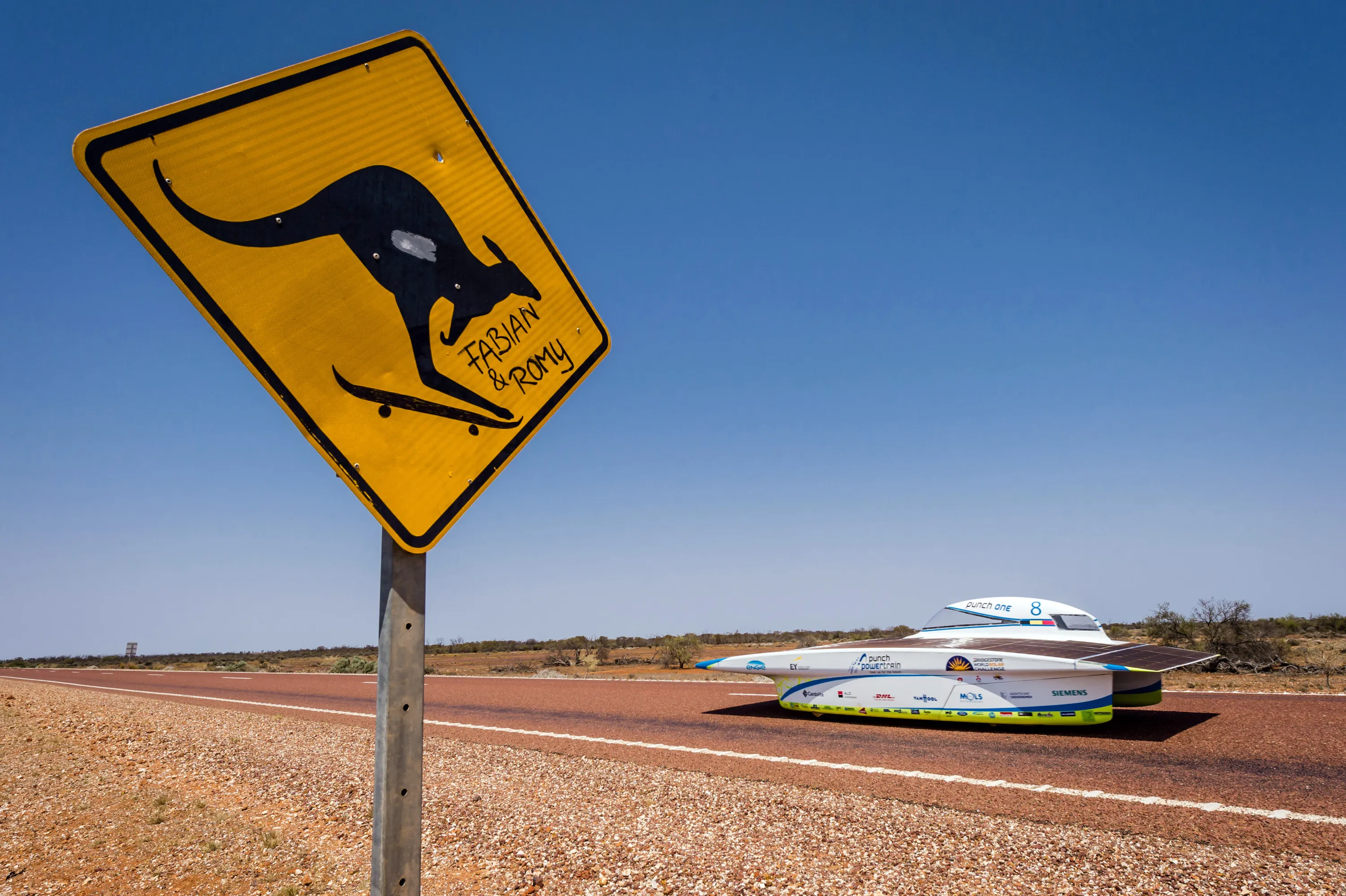 The Punch Powertrain Solar Team car from Belgium competes during the fourth day of the 2015 World Solar Challenge in Coober Pedy, Australia, on Wednesday, October 21, 2015. 45 Solar cars from 25 different countries participate in a 3,000 km race from Darwin to Adelaide. (Photo by Geert Vanden Wijngaert/AP Photo)