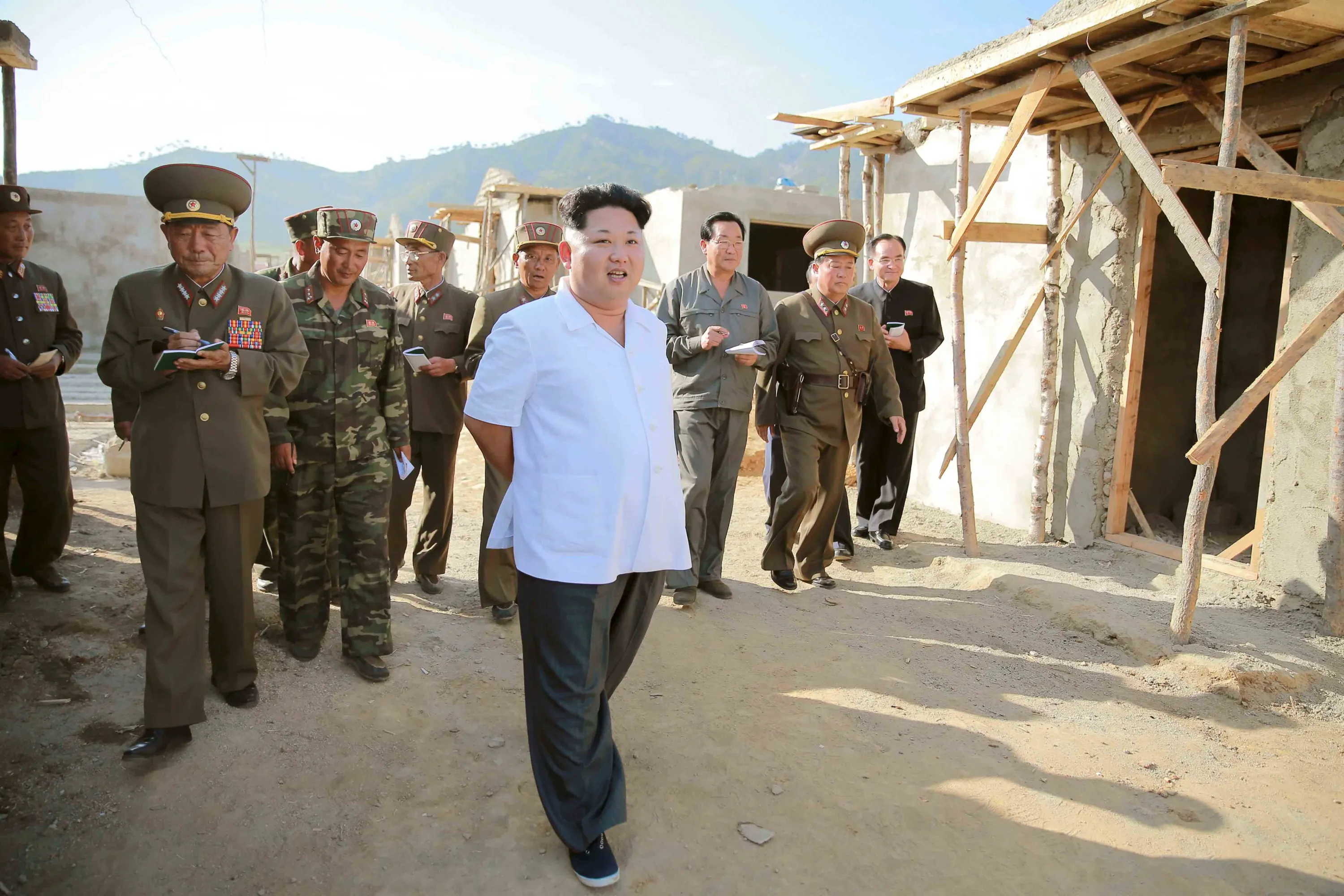 North Korean leader Kim Jong Un gives guidance on the field during the drive for recovery from the flood that hit Rason city in this undated picture. (Photo by Reuters/KCNA)