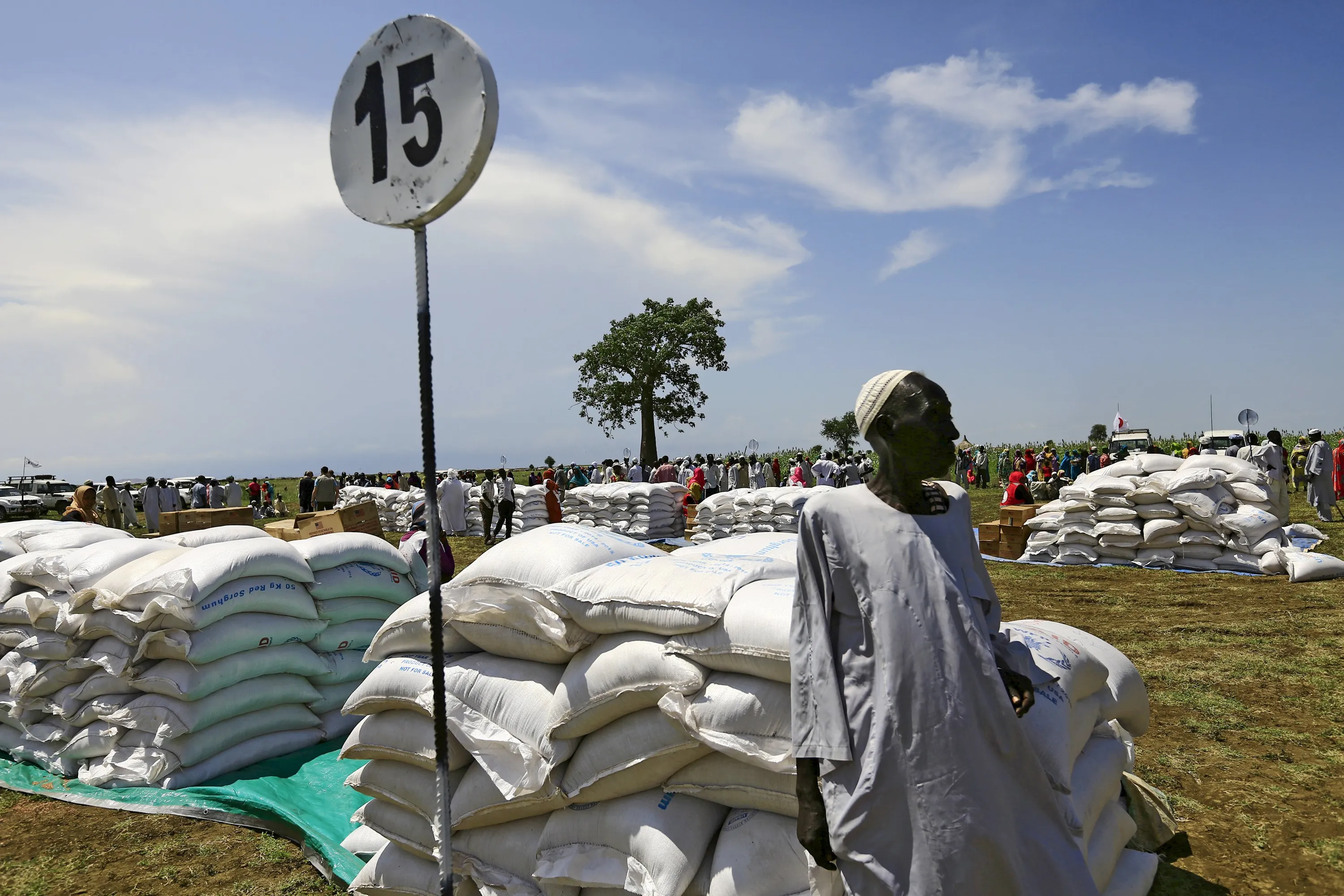 A man waits to receive food provided by the United Nations' World Food Programme (WFP) during a visit by a European Union delegation, at an Internally Displaced Persons (IDP) camp in Azaza, east of Ad Damazin, capital of Blue Nile state, Sudan October 21, 2015. (Photo by Mohamed Nureldin Abdallah/Reuters)