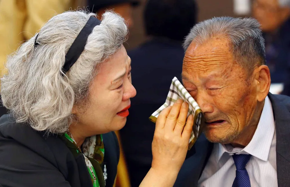 South Korean Lee Jung-sook (L), 68, wipes the tears from her North Korean father Lee Heung-jong, 88, as they bid each other a sad farewell at a resort on Mount Kumgang, North Korea, 22 October 2015. About 390 South Koreans arrived at the resort two days ago for the first face-to-face reunion of families separated by the 1950-53 Korean War in nearly 20 months. A second group of some 260 South Koreans will do the same for three days starting on 24 October. (Photo by Yonhap/EPA)