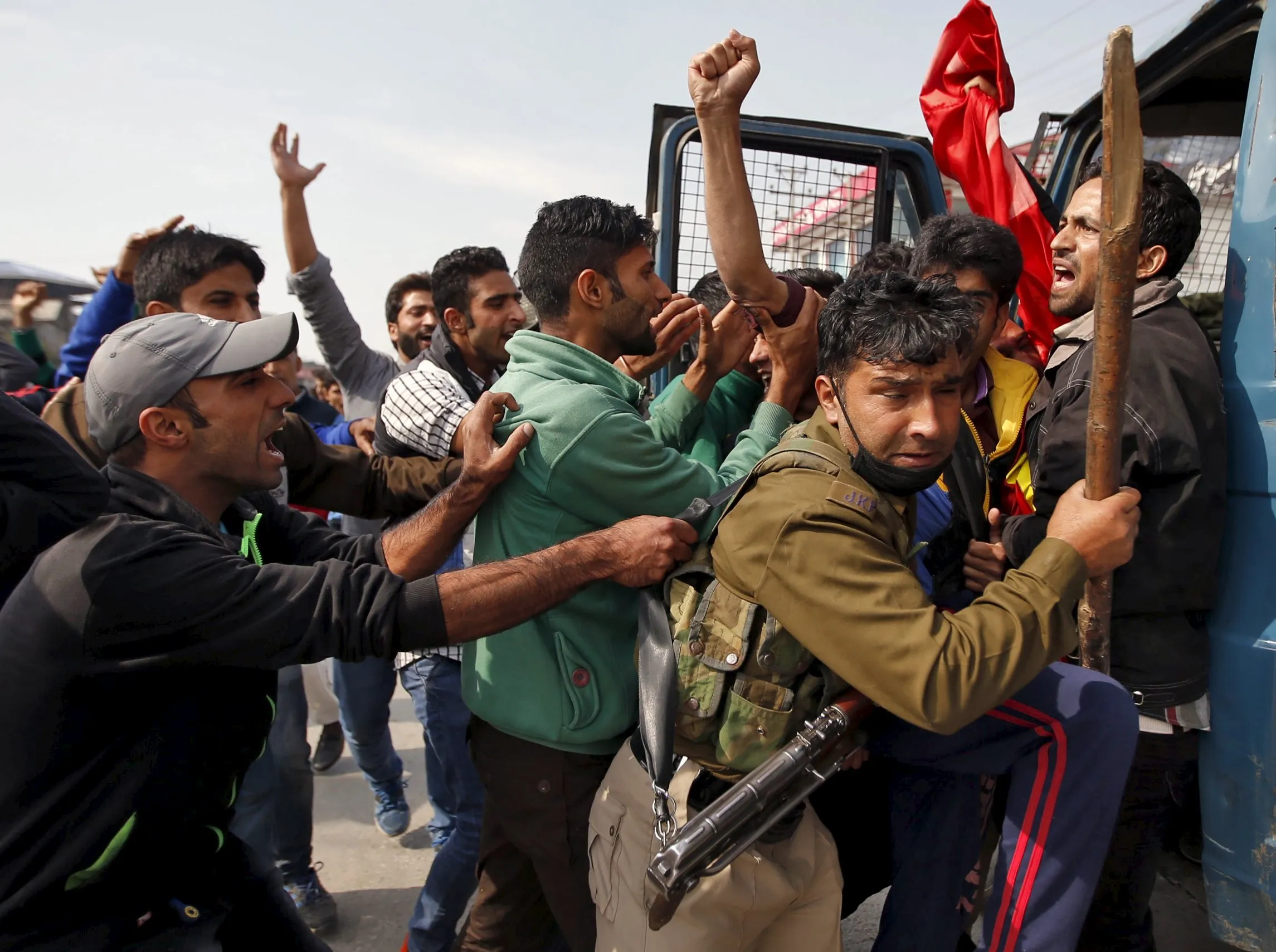 Kashmiri Shi'ite Muslim mourners shout slogans as they scuffle with Indian police during a Muharram procession ahead of Ashura in Srinagar October 22, 2015. (Photo by Danish Ismail/Reuters)