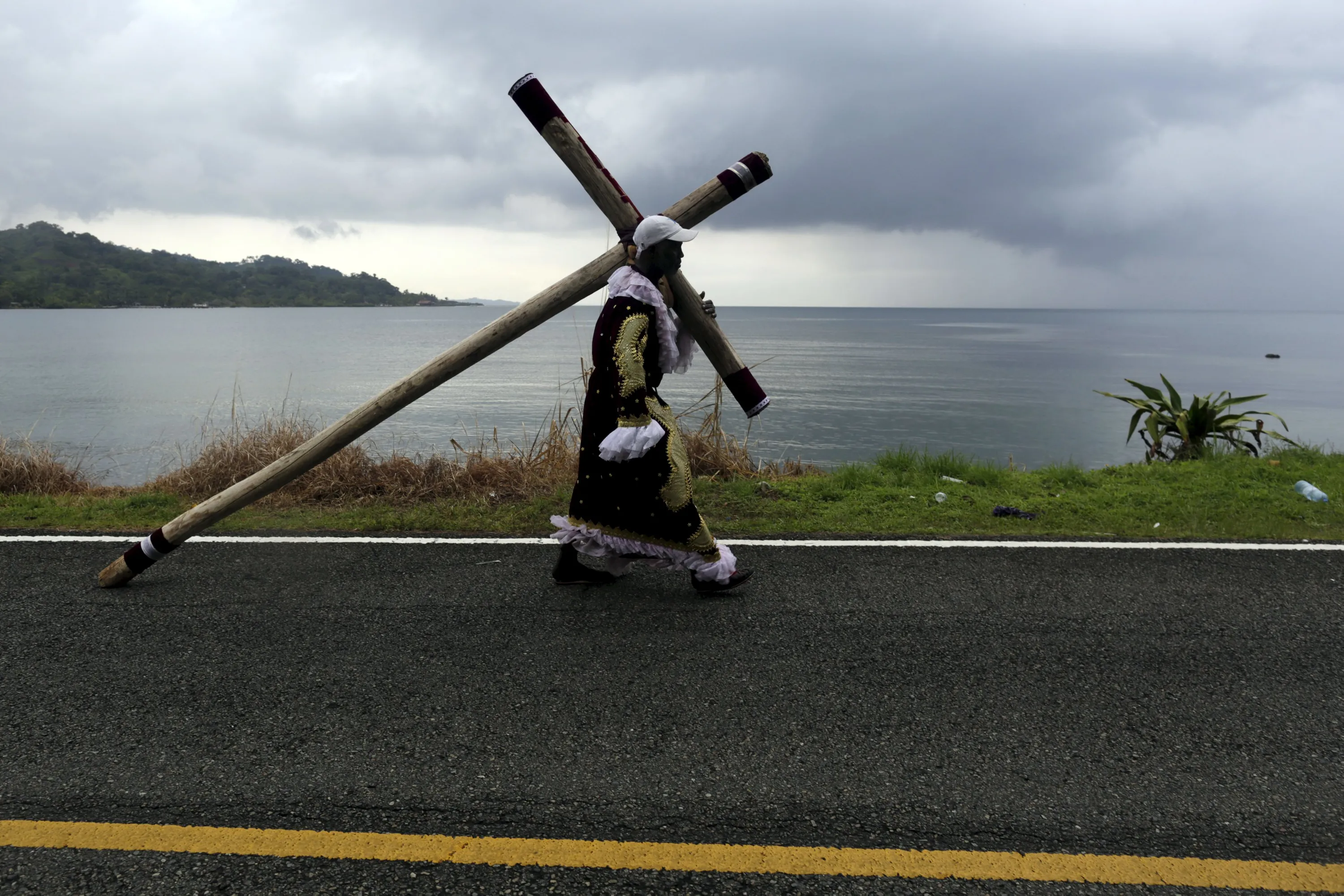 A worshipper of the Black Christ of Portobelo carries a cross during the annual celebratory pilgrimage in Portobelo, in the province of Colon October 21, 2015. (Photo by Carlos Jasso/Reuters)